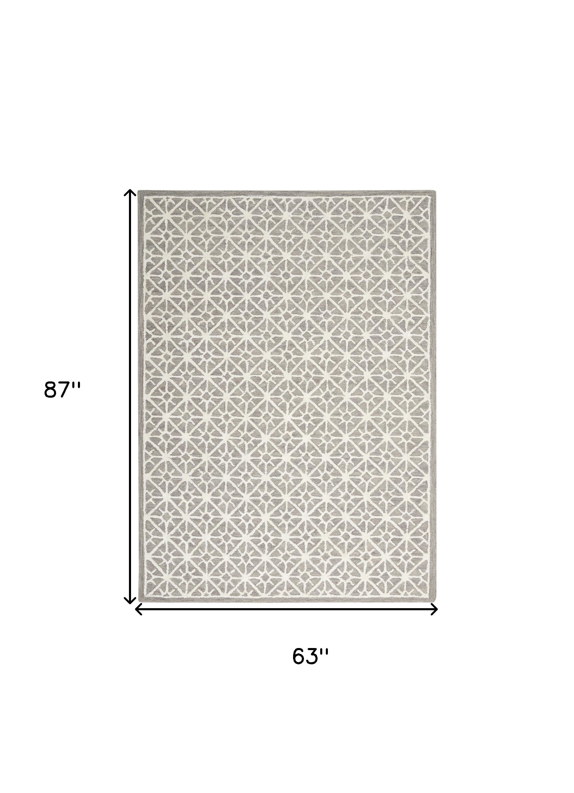 5' x 7' Gray and Ivory Geometric Hand Tufted Area Rug