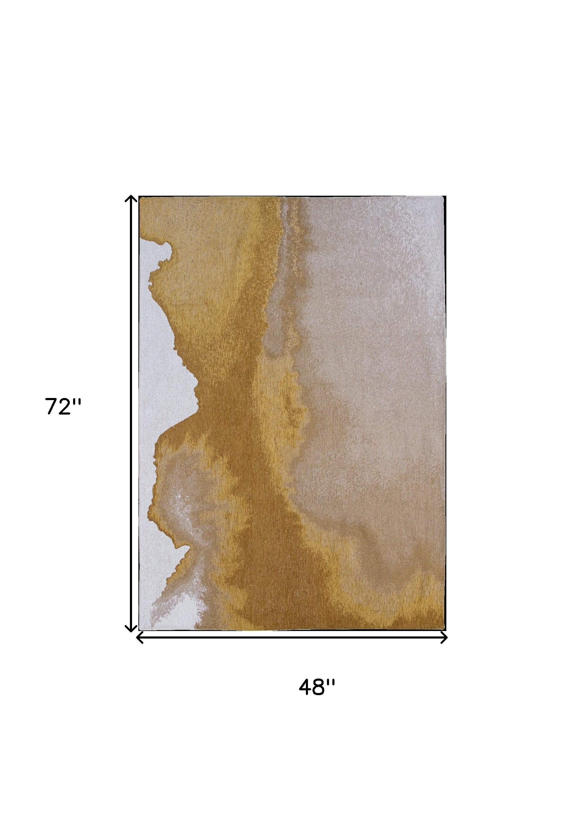 5' x 7' Gray and Yellow Abstract Non Skid Area Rug