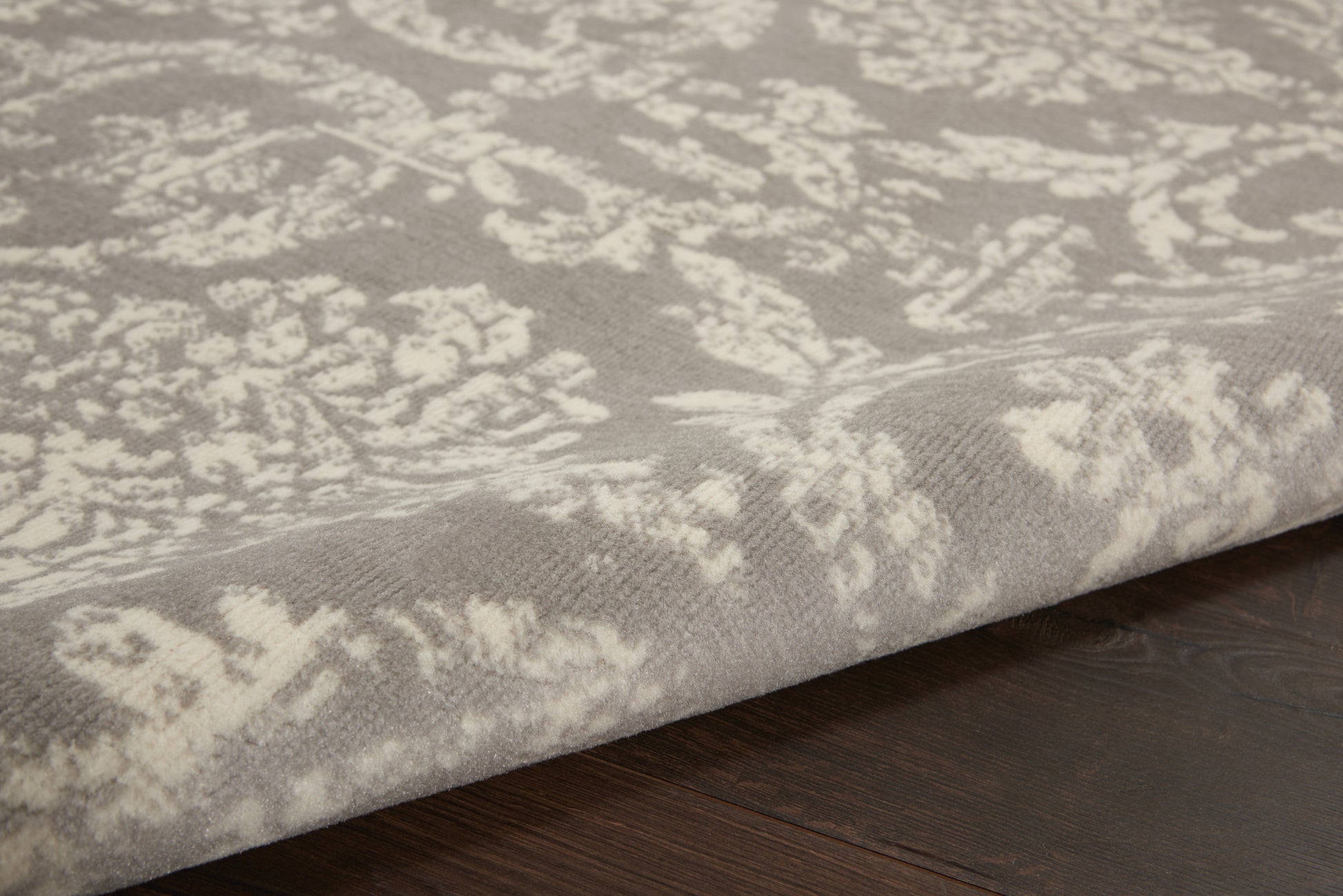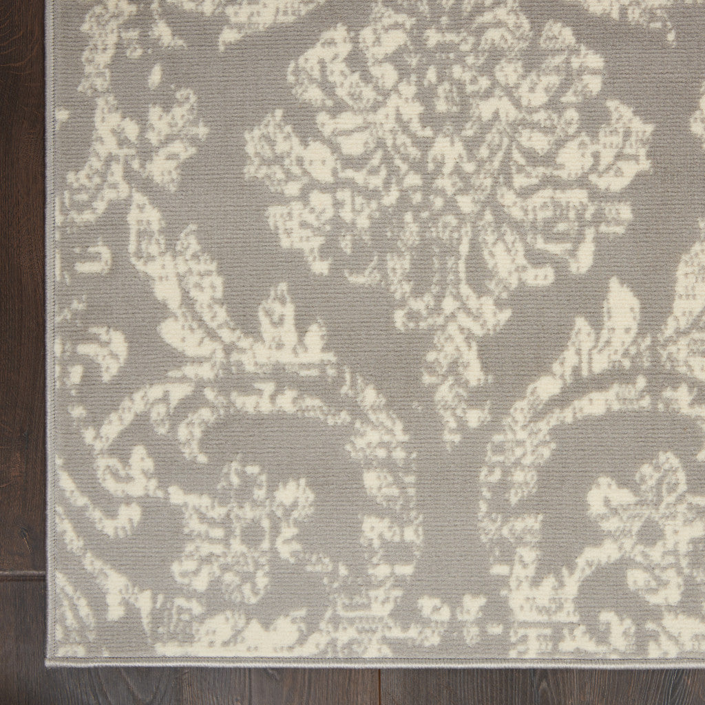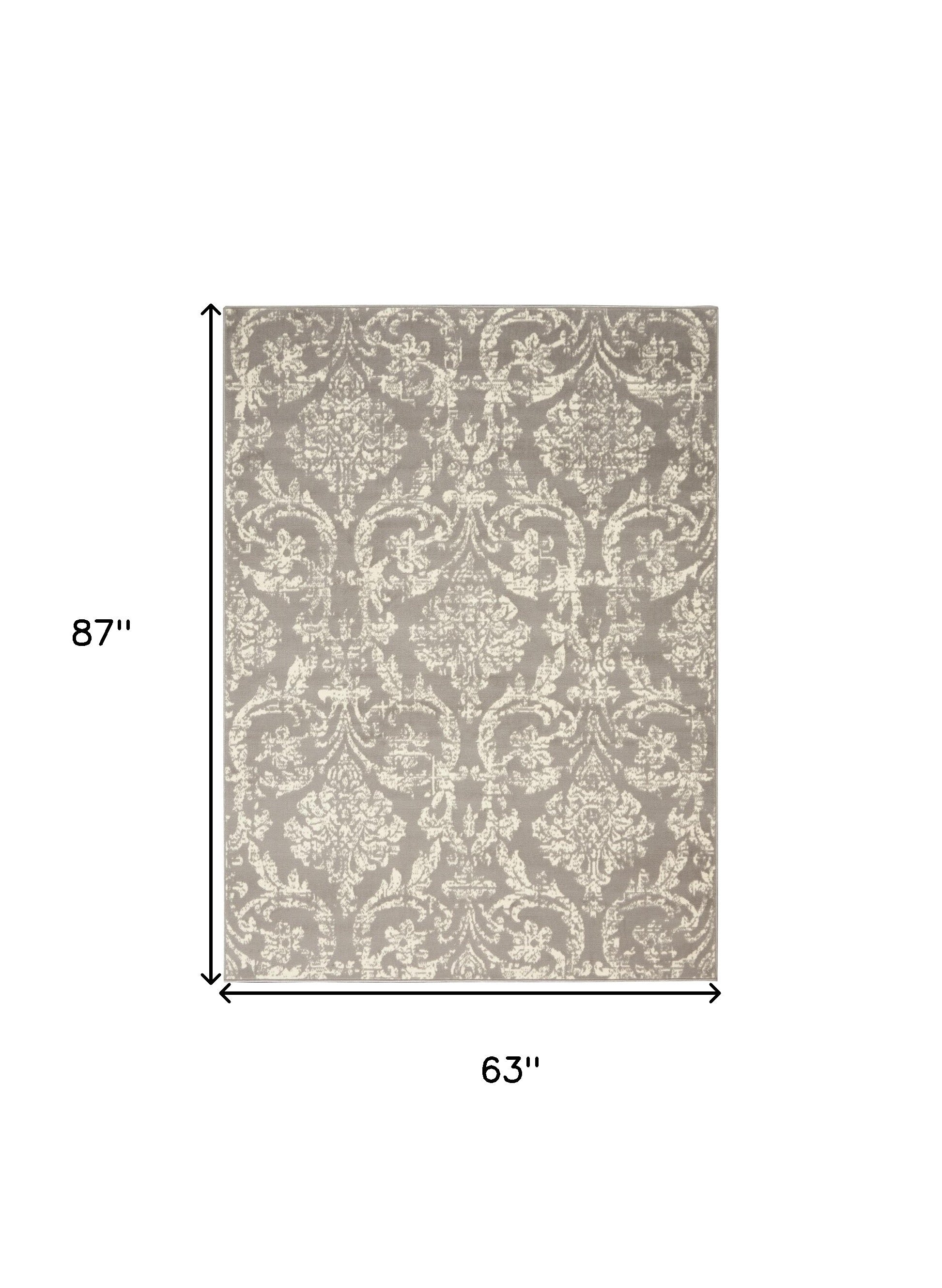 5' x 7' Gray Damask Power Loom Non Skid Area Rug