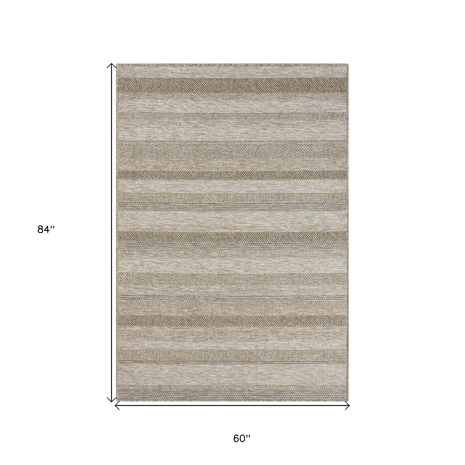5' X 7' Gray Striped Handmade Indoor Outdoor Area Rug