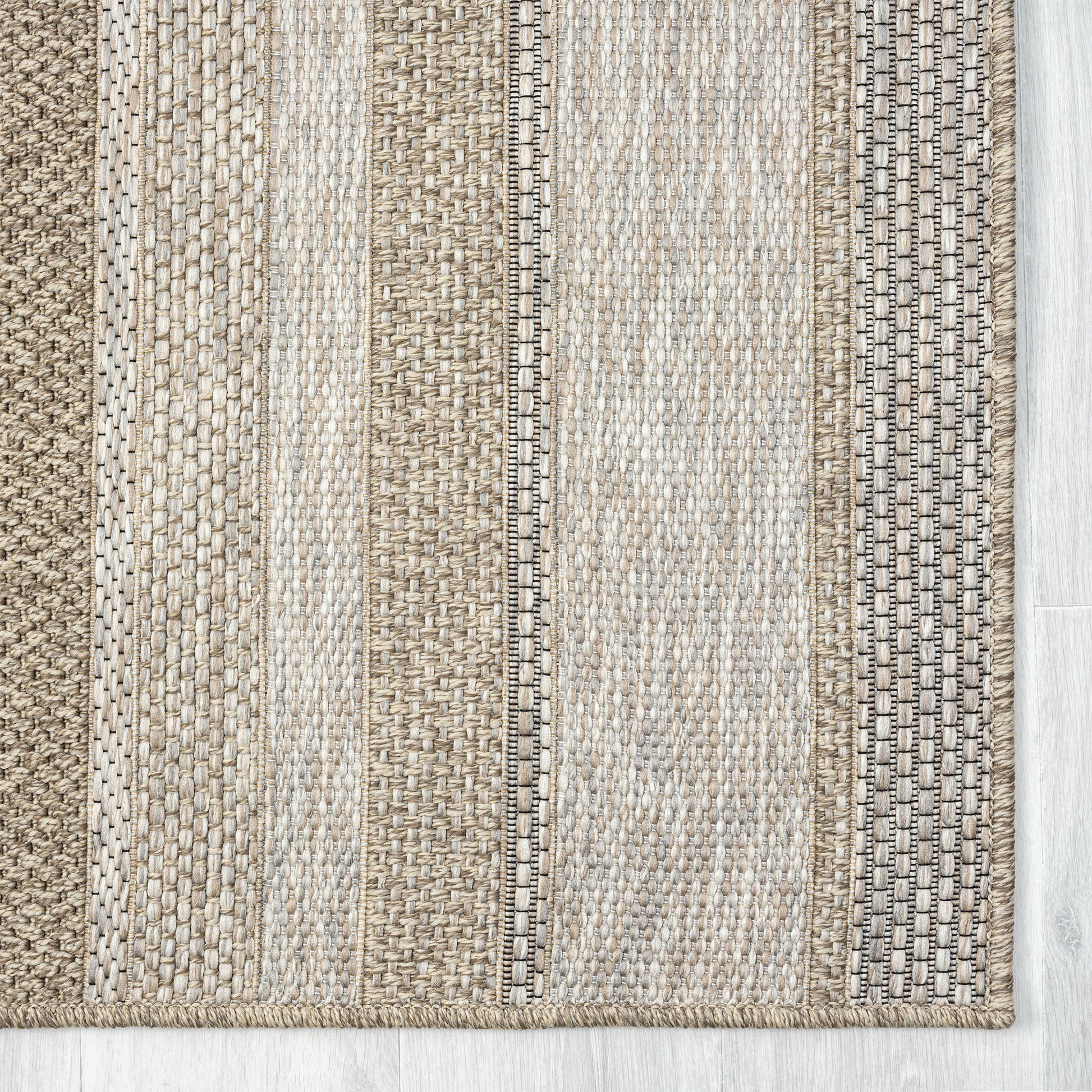 Add great coloration and comfortable texture to your space with this 5' x 7' gray striped handmade indoor outdoor area rug. This rectangle shaped rug features a striped design in gray to give it visual interest. A classic shape marries with good looking design for your space The coloring of this rug adds a delightfully neutral tone to your home and will easily match with most any decor. Place this area rug against a hardwood or tile floor and it will enliven your living space with style and sophistication. 0.3" H x 60" W x 84" D