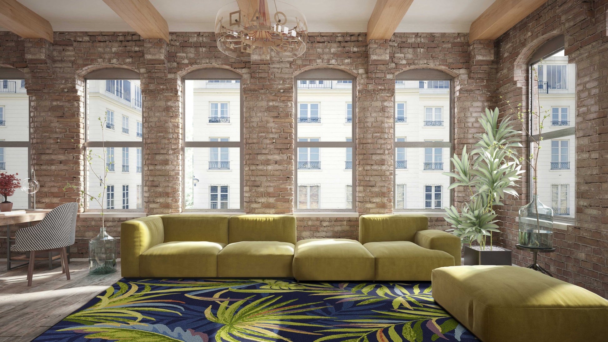 5' X 7' Ink Blue Tropical Leaves Uv Treated Indoor Outdoor Area Rug