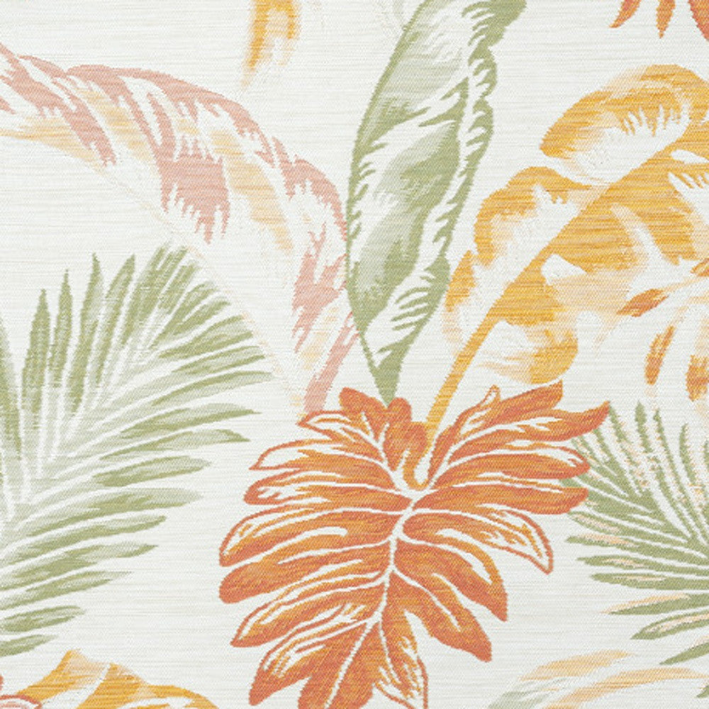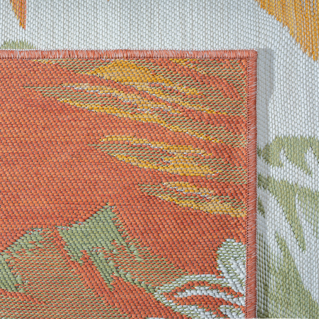 5' x 7' Ivory Green and Orange Palm Leaf Stain Resistant Indoor Outdoor Area Rug