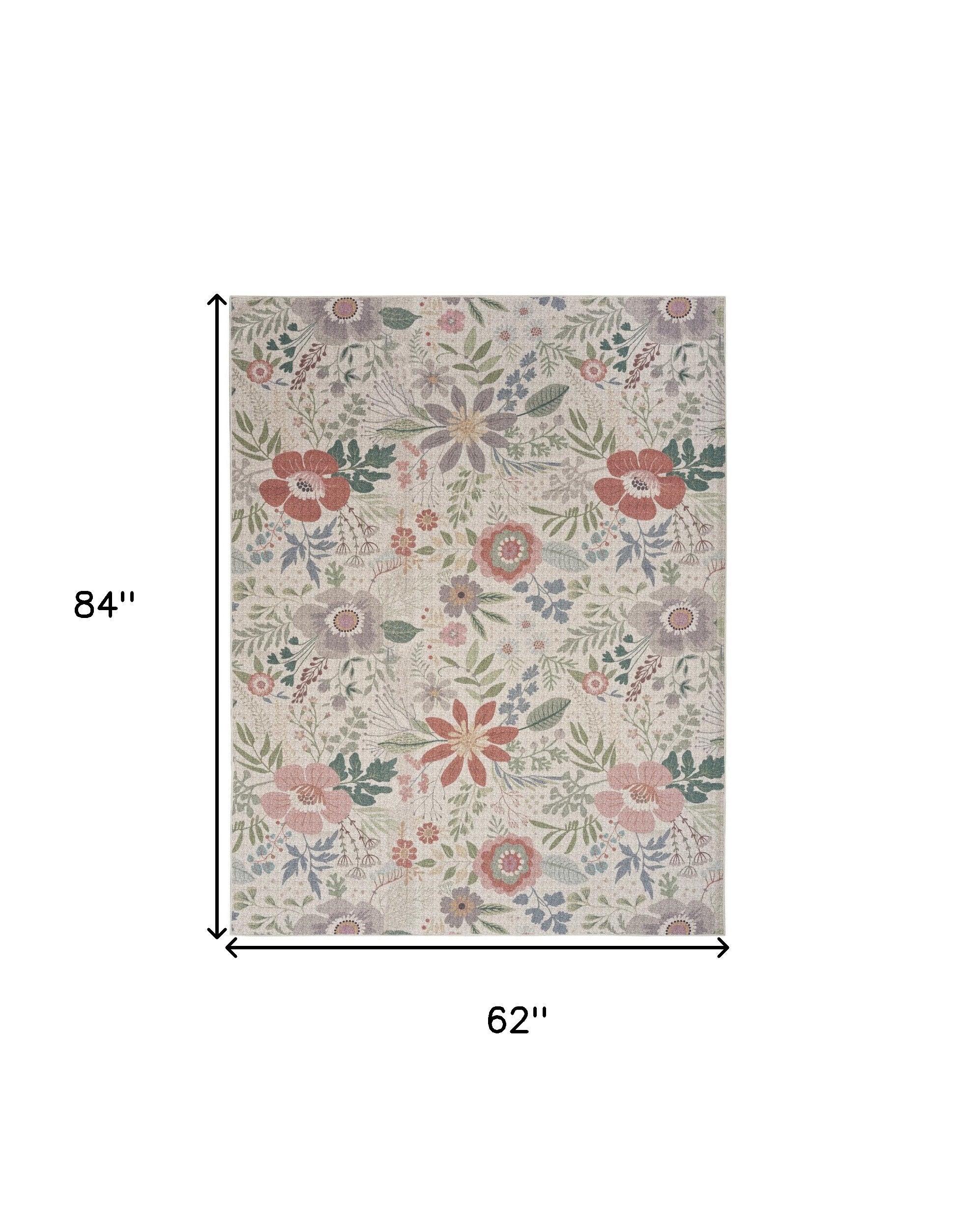 Add some artistry to your room with this 5-foot x 7-foot ivory green and red floral power loom washable non skid area rug. This rectangle shaped rug features a floral design in ivory green and red to give it visual interest. A classic shape marries with good looking design for your space Place this area rug against a hardwood or tile floor and it will enliven your living space with style and sophistication. .25-inch H x 62.00-inch W x 84.00-inch D