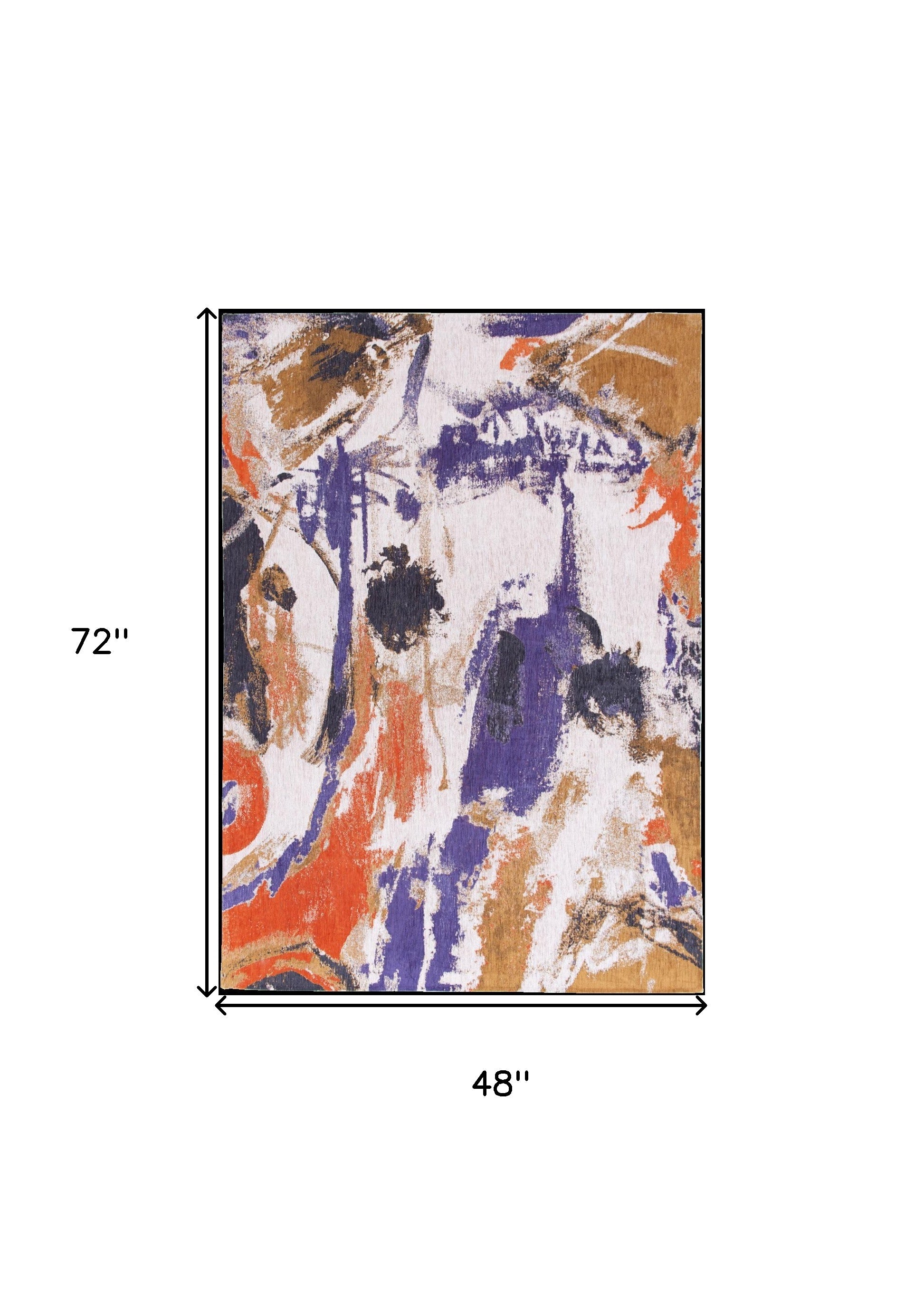 5' x 7' Purple and White Abstract Non Skid Area Rug