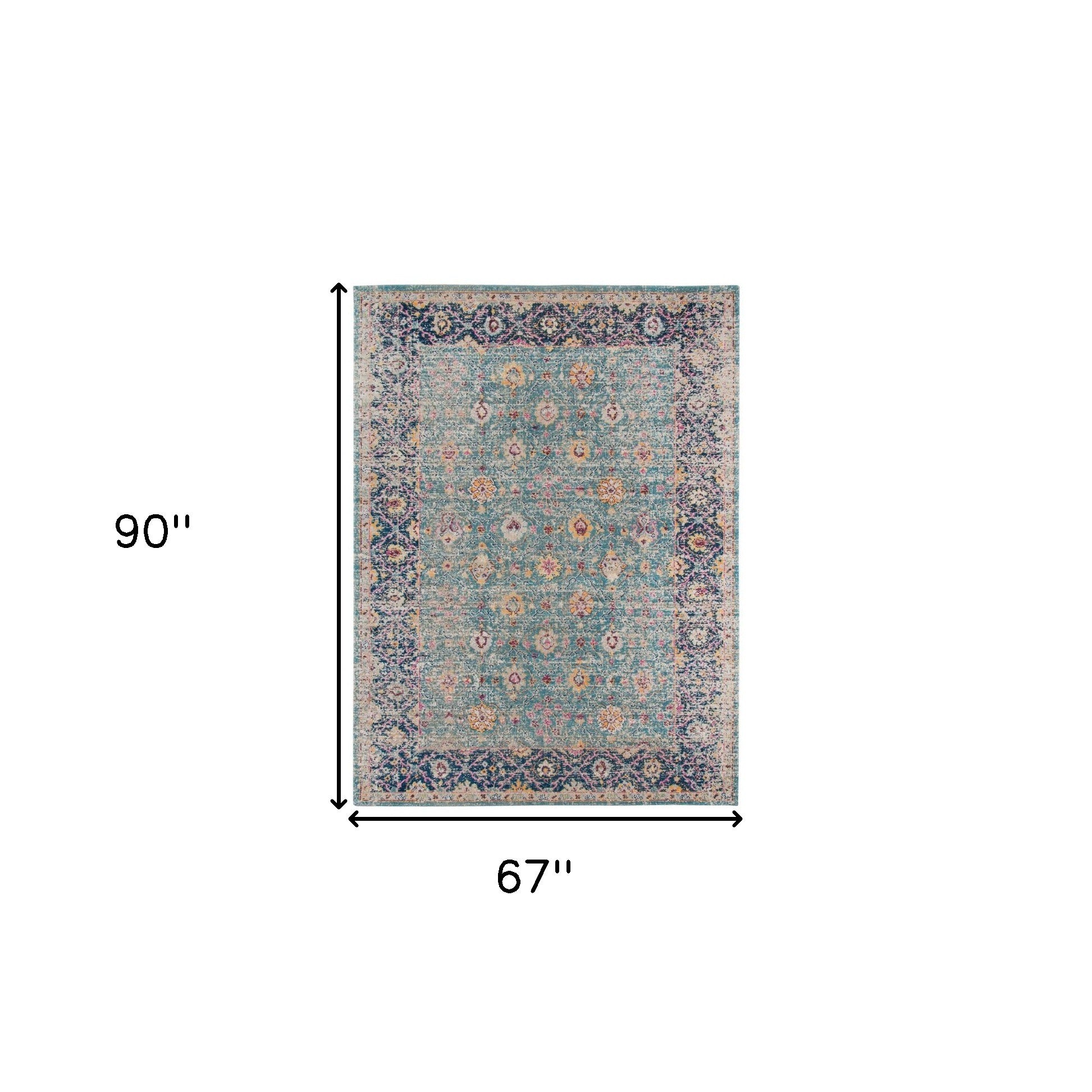 Set an inviting tone in your space with this 5 feet x 7 feet teal blue floral power loom area rug with fringe. This rectangle shaped rug features a floral design in teal blue to give it visual interest. A classic shape marries with good looking design for your space Ideal for spaces with kids and pets, this rug is stain resistant to help repel stains and spilled liquids. Area Rugs help to give warmth and sense of home to your space. 0.15 inches H x 67 inches W x 90 inches D