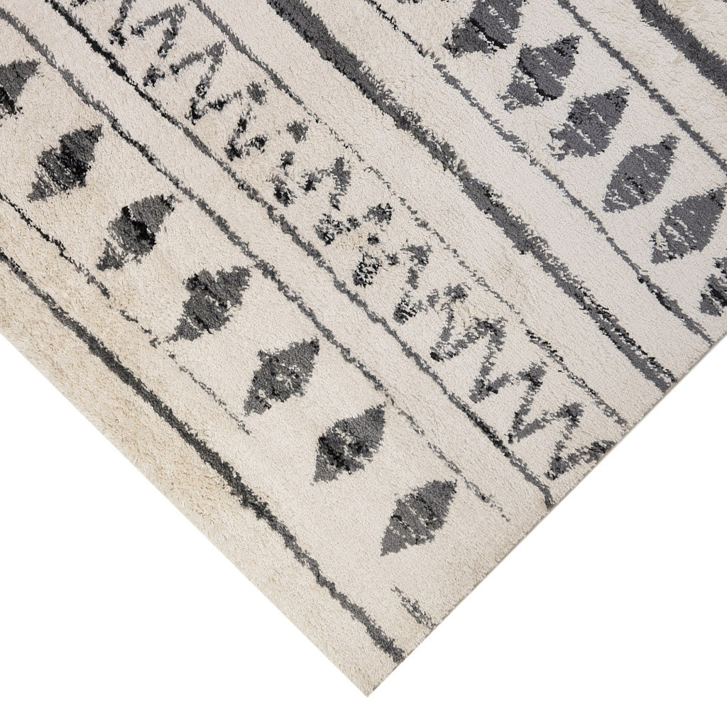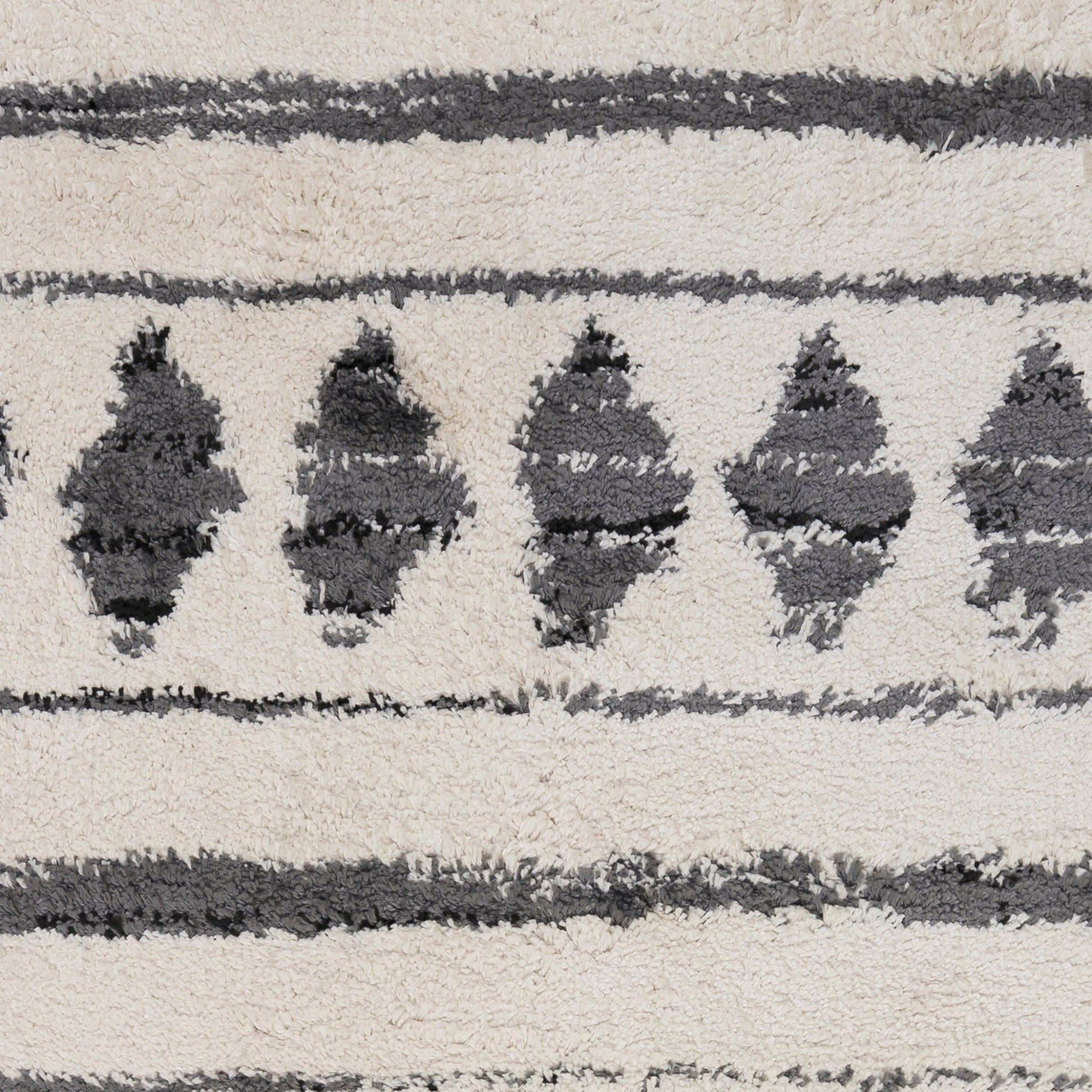 Add some artistry to your room with this 5-foot x 8-foot black and off white geometric shag area rug. This rectangle shaped rug features a geometric design in black and off white to give it visual interest. A classic shape marries with good looking design for your space ideal for spaces with kids and pets, this rug is stain resistant to help repel stains and spilled liquids. The retro shag construction of this luxurious rug will provide a soft and comfortable barrier to color tile and hardwood floors. Place this area rug against a hardwood or tile floor and it will enliven your living space with style and sophistication. 1.8-inch H x 60-inch W x 90-inch D