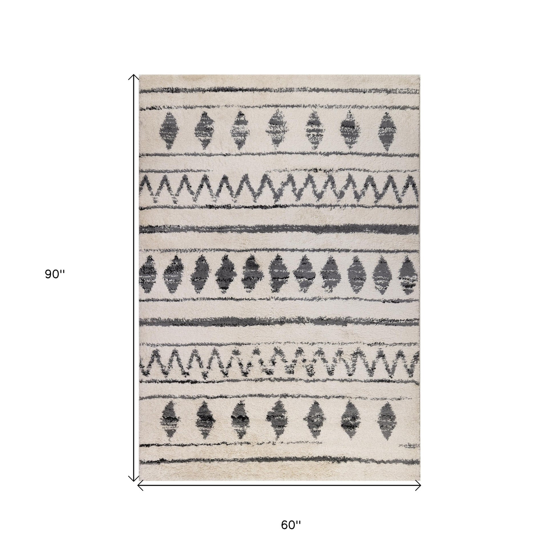 5' x 8' Black and Off White Geometric Shag Area Rug