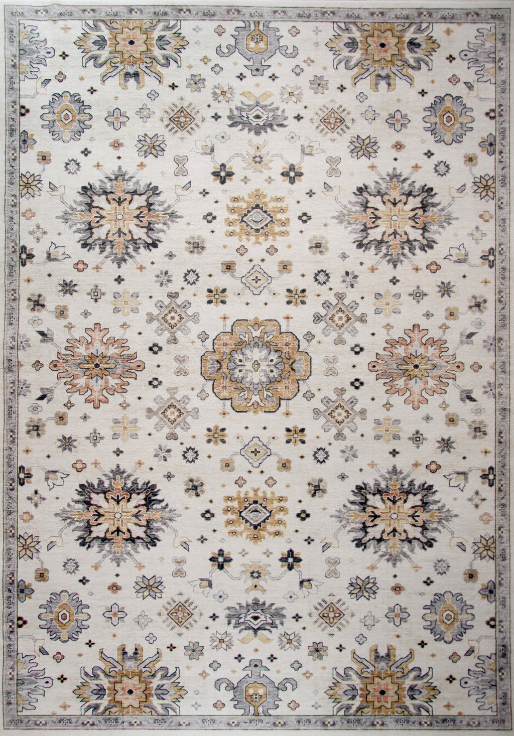 Add some artistry to your room with this 5-foot x 8-foot gray and gold floral area rug. This rectangle shaped rug features a floral design in gray and gold to give it visual interest. A classic shape marries with good looking design for your space Ideal for spaces with kids and pets, this rug is stain resistant to help repel stains and spilled liquids. Area Rugs help to give warmth and sense of home to your space. 91-inch H x 63-inch W x 0.4-inch D