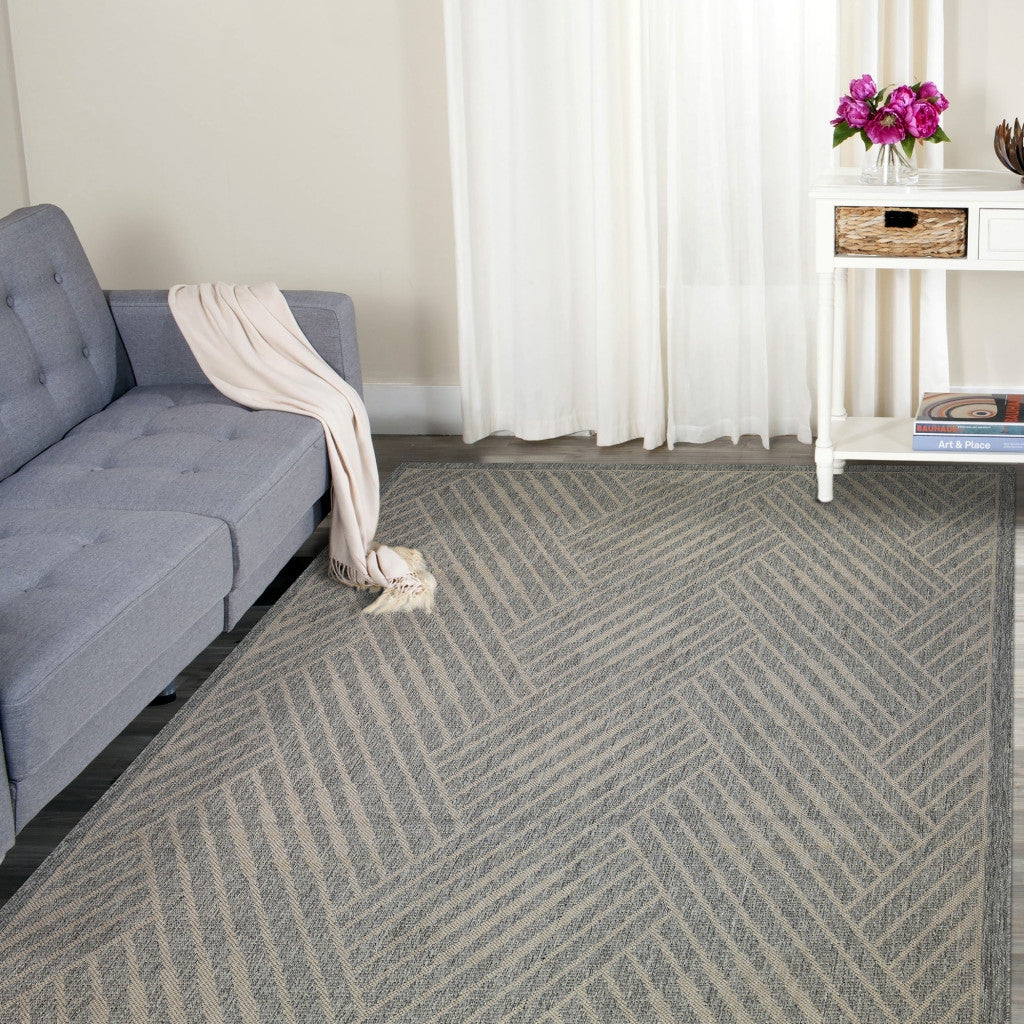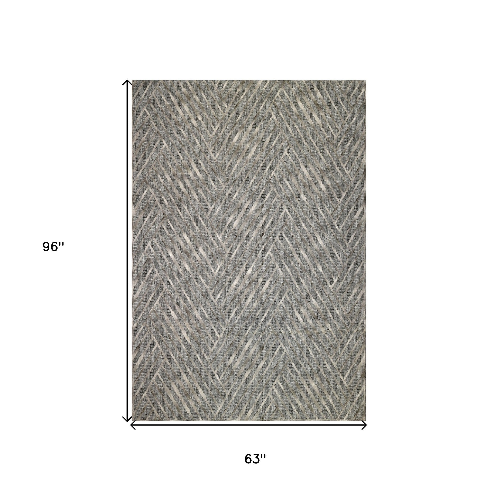 5' x 8' Gray Geometric Stain Resistant Indoor Outdoor Area Rug
