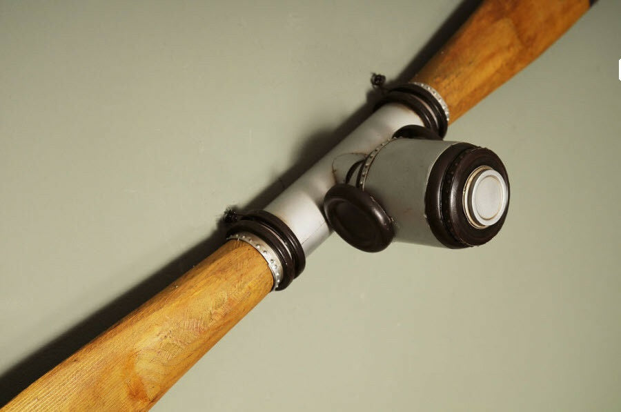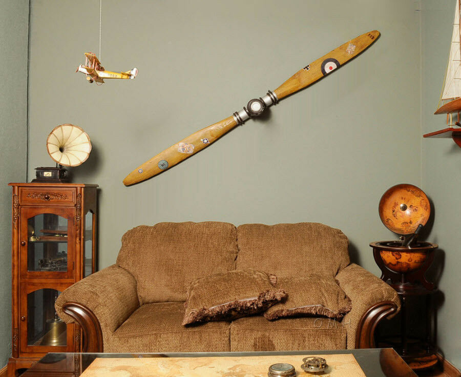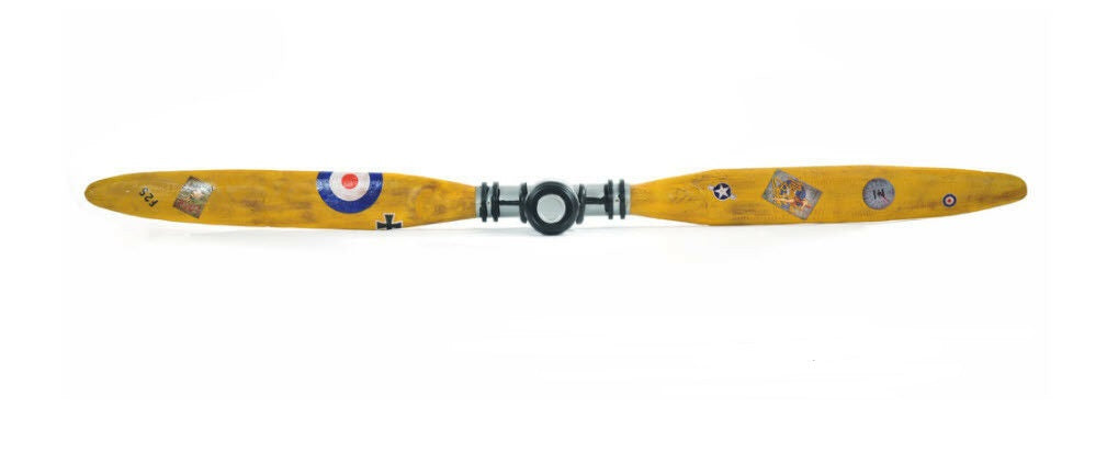Nothing captures the spirit and nostalgia of the World War I era like this timeless antique propeller. At approximately 79 inches long, this decor piece is perfect for an aviation expert or collector. This vintage propeller is an exact replica of an original propeller from the World War I era. It features solid wood with brass accents and unique designs. A must have for the collector and enthusiast!