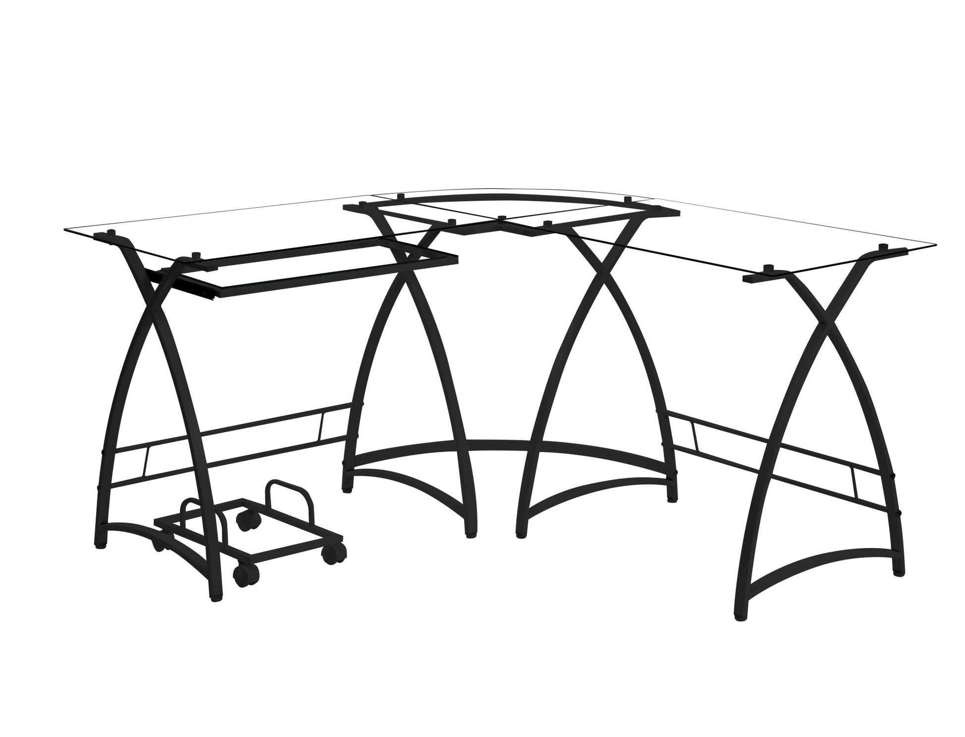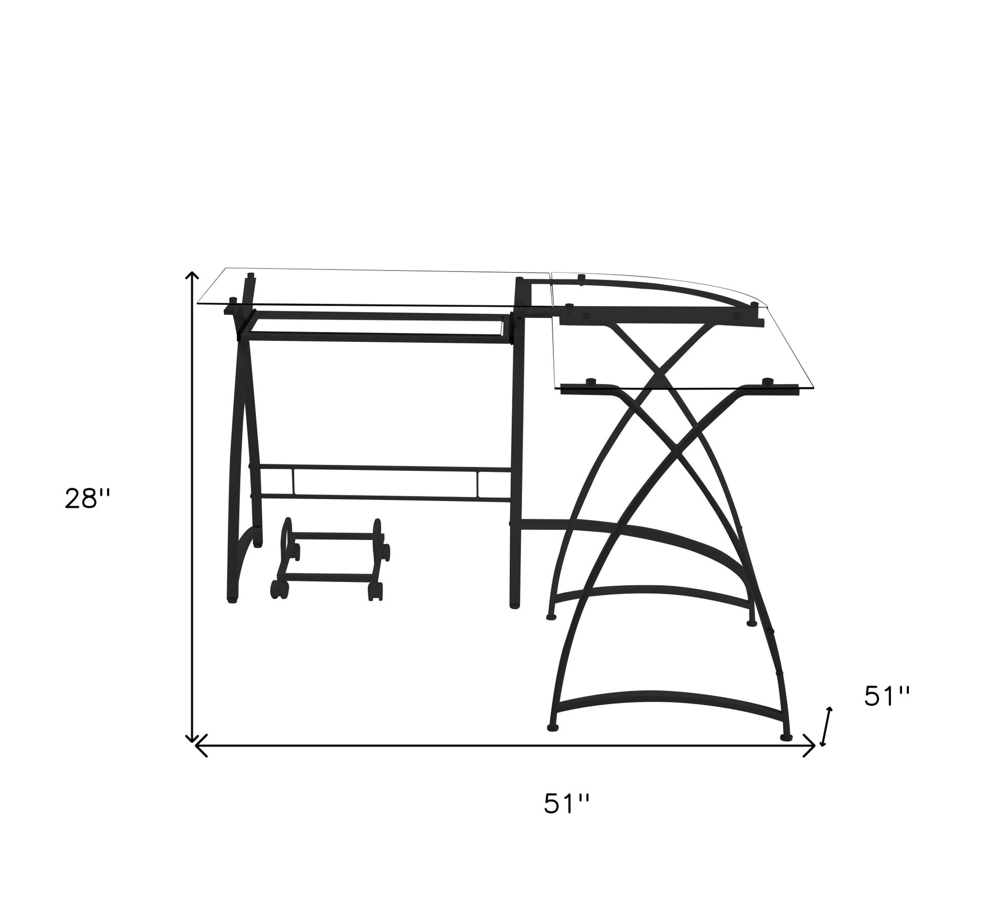 Look like an executive when you add this 51-inch clear and black glass l shape computer desk to your office space. Made for the ultimate in convenience and versatility, this desk can be assembled in either direction. Forged with premium craftsmanship and design, this desk is built to last. 28-inch H x 51-inch W x 51-inch D