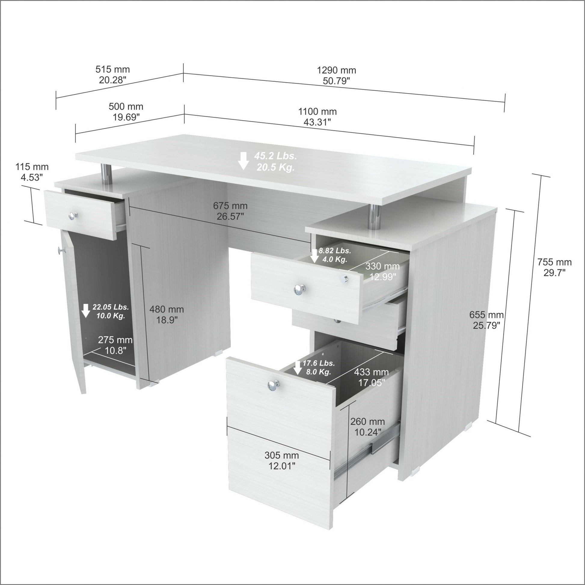 This 51" white mirrored computer desk with four drawers will help to turn your office space into an executive suite. With a classic shape and style, this well made rectangular desk is a stylish way to keep your office space looking good. Multiple drawers give this desk plenty of hidden storage for your office essentials. Built to last, this sturdy desk is designed for comfort and efficiency for years to come. 29.7" H x 50.79" W x 19.69" D