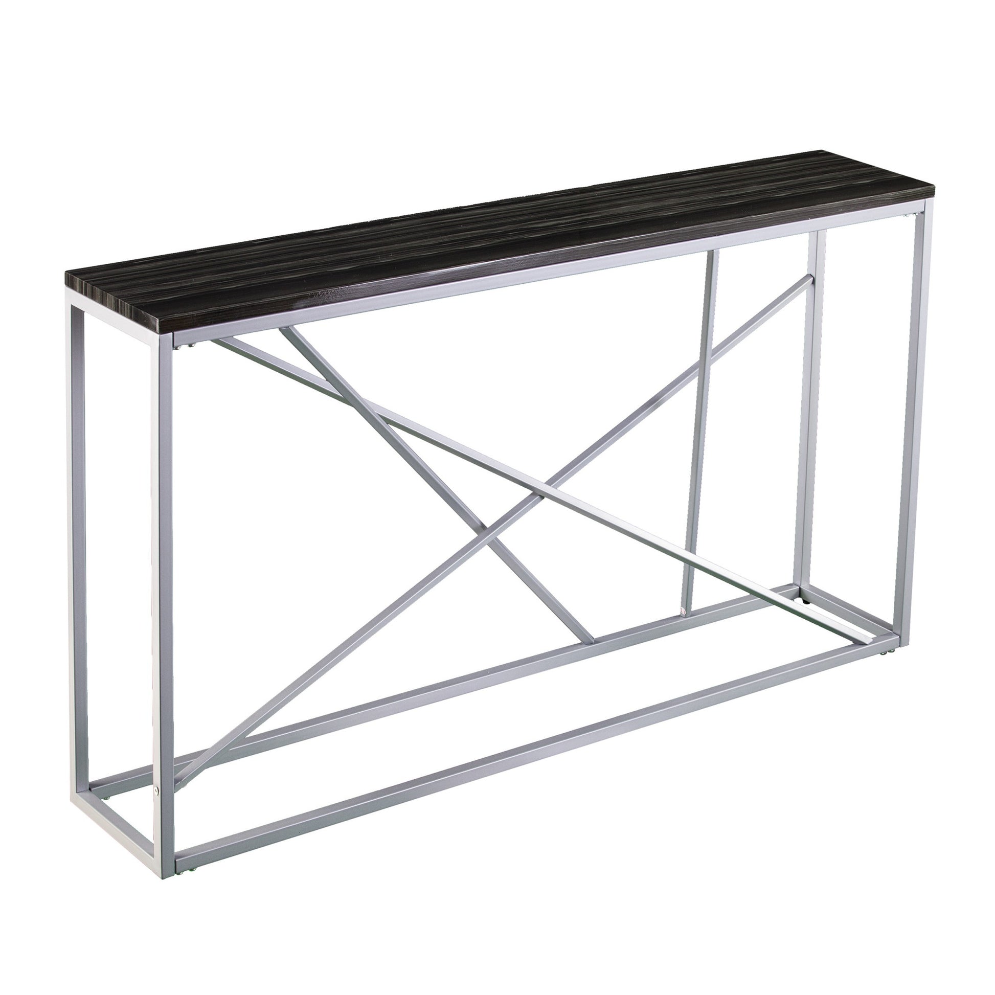 This 52-inch black and silver faux stone frame console table is a high-quality, long-lasting piece of furniture that you can enjoy for years to come. This versatile table is a classic rectangular shape, which will easily fit into most any space in your home. Ideal for living rooms, bedrooms, home offices, and lounge areas, this console table is not only good looking but multi-functional and practical addition to your space. 29-inch H x 52-inch W x 10-inch D