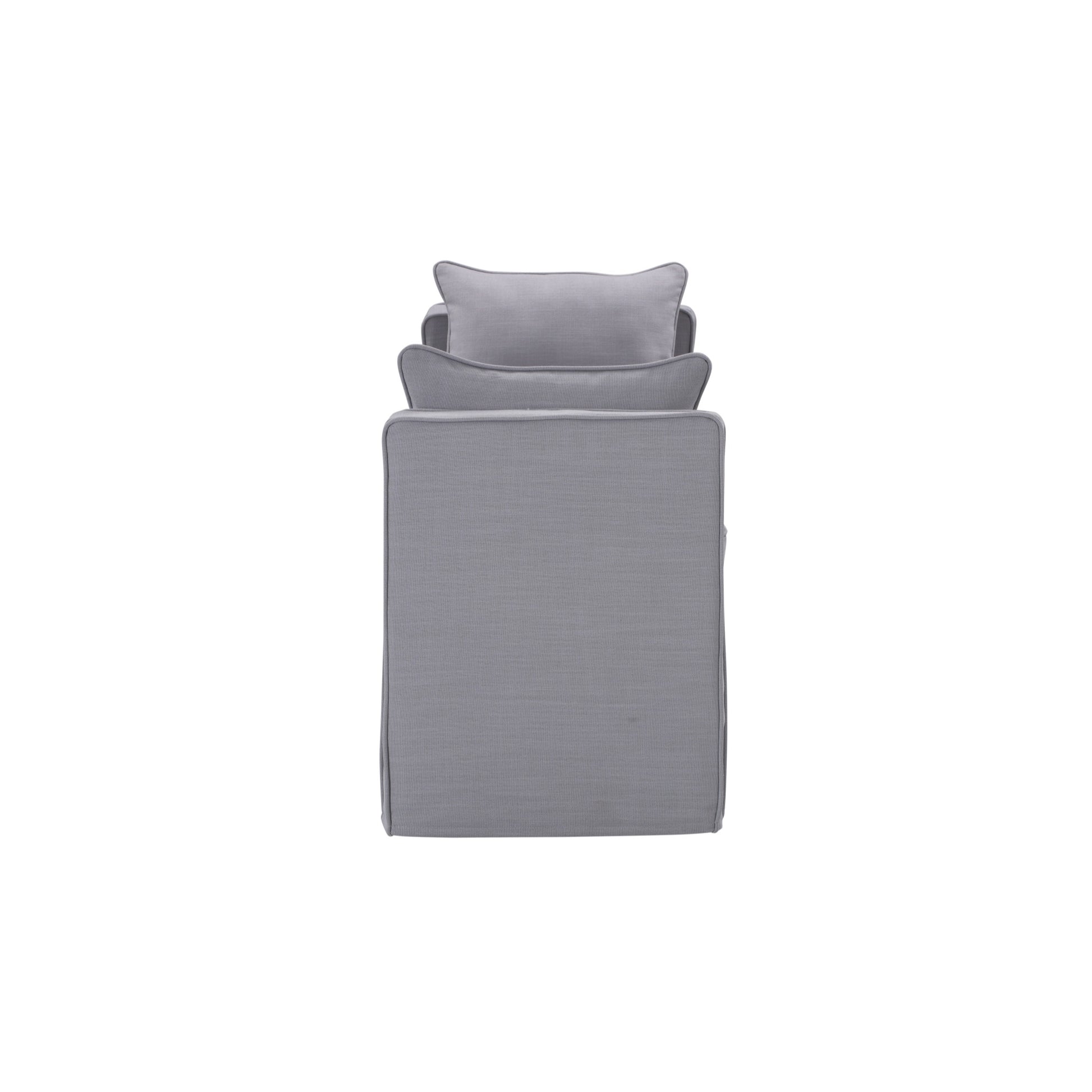 Optimize your space and add some charm to your room with the 53" light gray and black upholstered linen bench. A black manufactured wood frame is finished off with a light gray upholstery seat that is the epitomy of quality construction and design. Expertly upholstered with padding in a soft solid color 100% linen, this bench is as comfortable as it is good looking. Adding this bench to the end of your bed is a great idea to help you get ready in the morning. Benches don't have to be unsightly. Increase your seating and the fashion quotient of your room all at the same time with this hard wearing, versatile, and good looking bench. 24.8" H x 52.8" W x 19.3" D