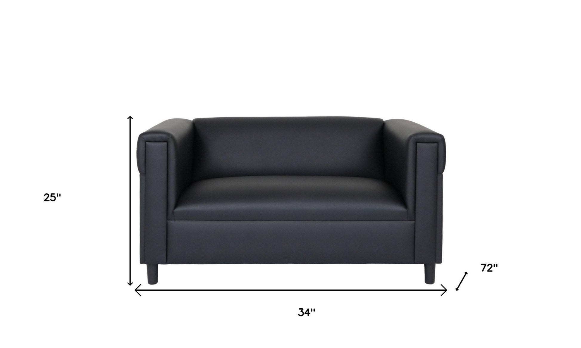 This 54-inch black faux leather loveseat is made from sturdy and resilient faux leather that will look and feel like leather. Square arms offer a comfy place to rest and give this piece some interest and shape. Black solid wood legs effortlessly elevate the room and add a touch of contemporary design. A great showpiece for your room, this sofa is a must have. 25-inch H x 54-inch W x 34-inch D