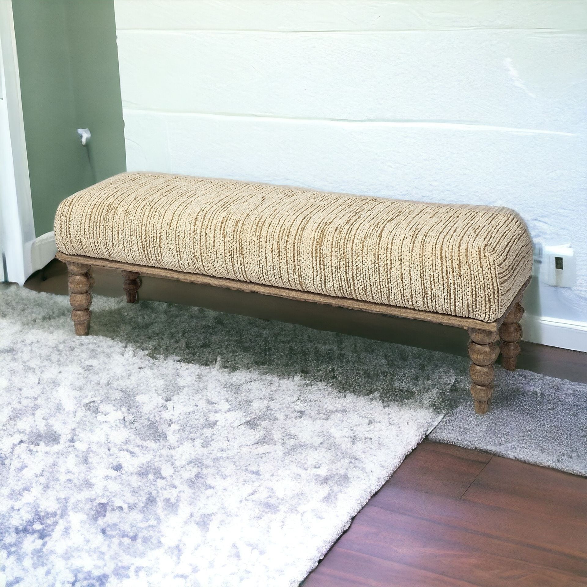 55" Cream and Wood Brown Upholstered Polyester Blend Bench