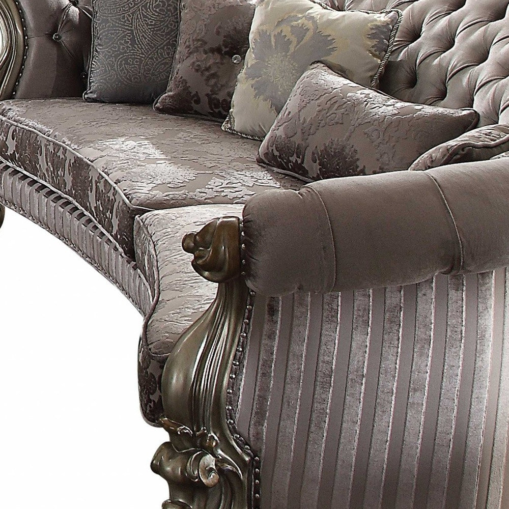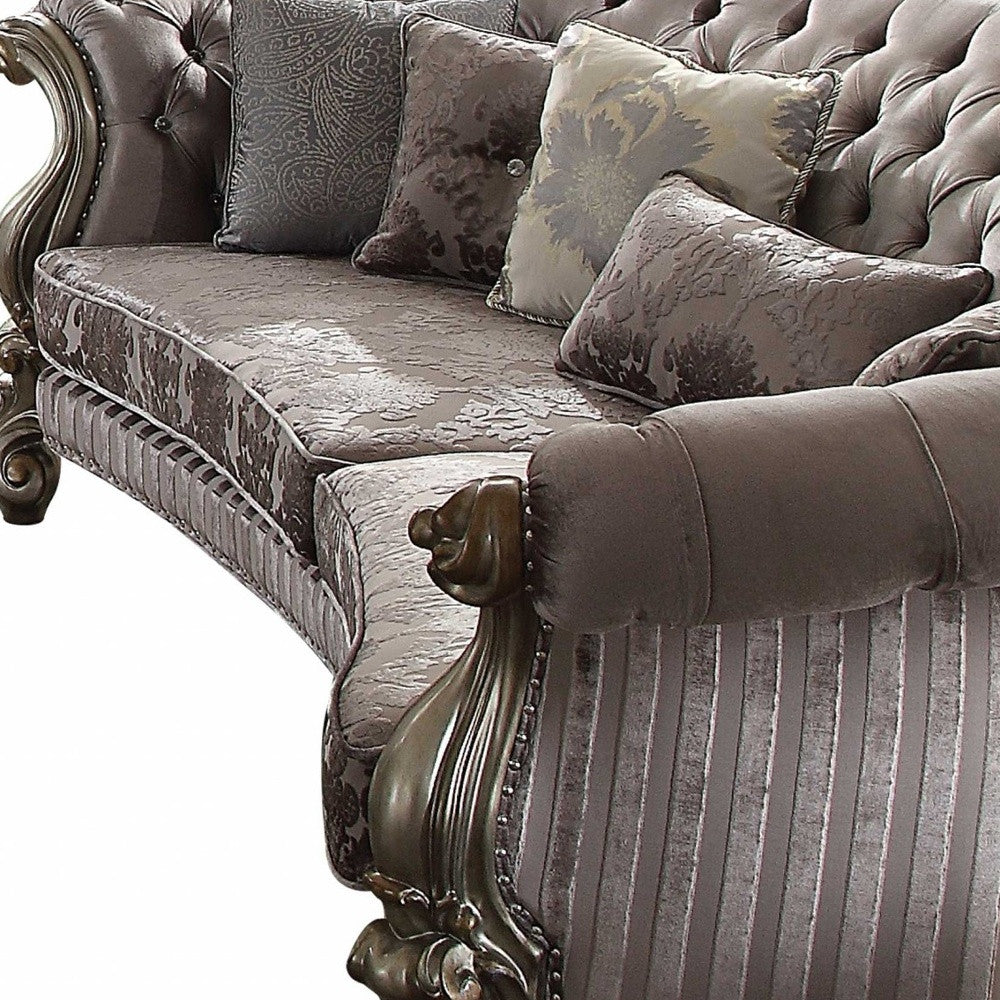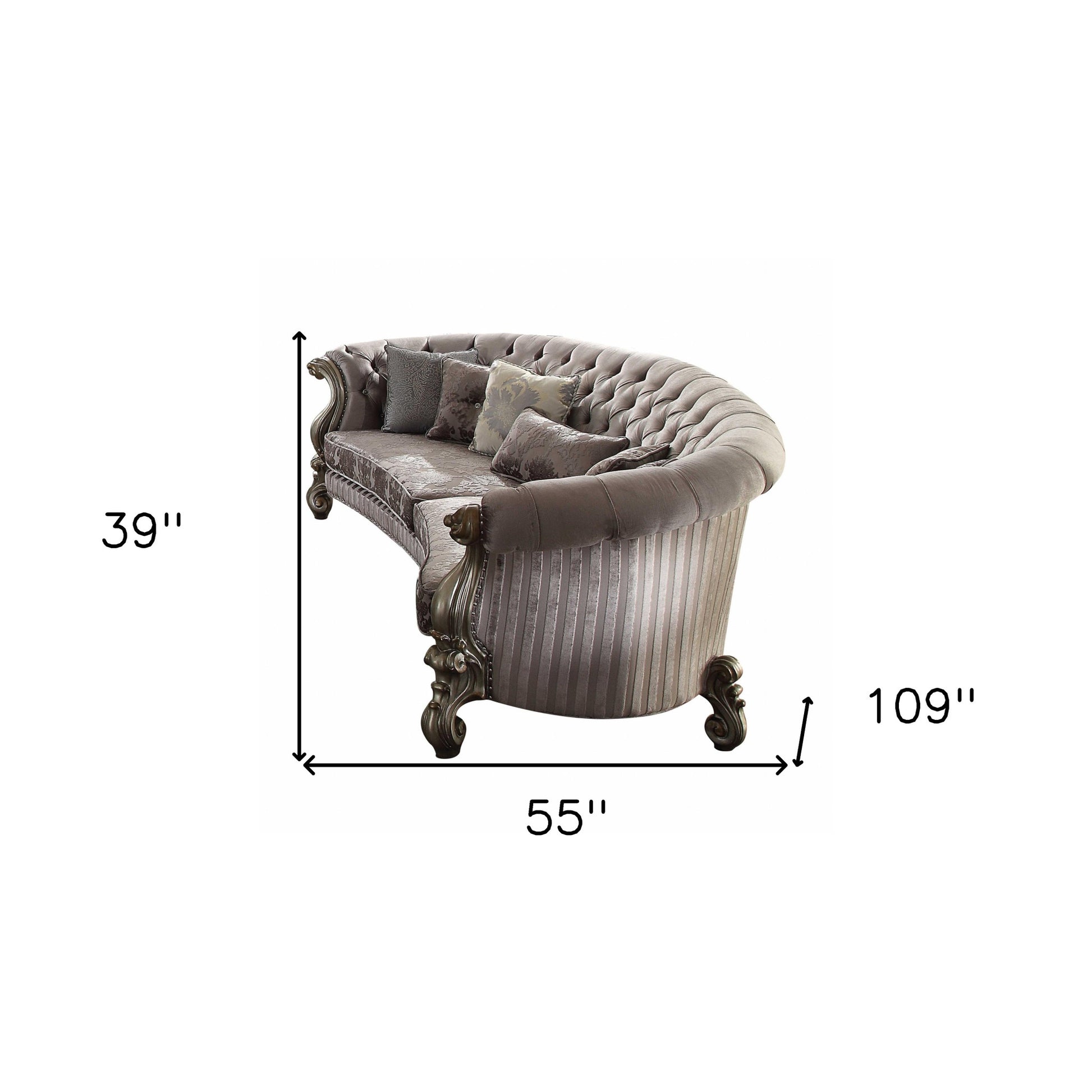 55" X 109" X 39" Velvet Antique Platinum Upholstery Poly Resin Sofa w5 Pillows