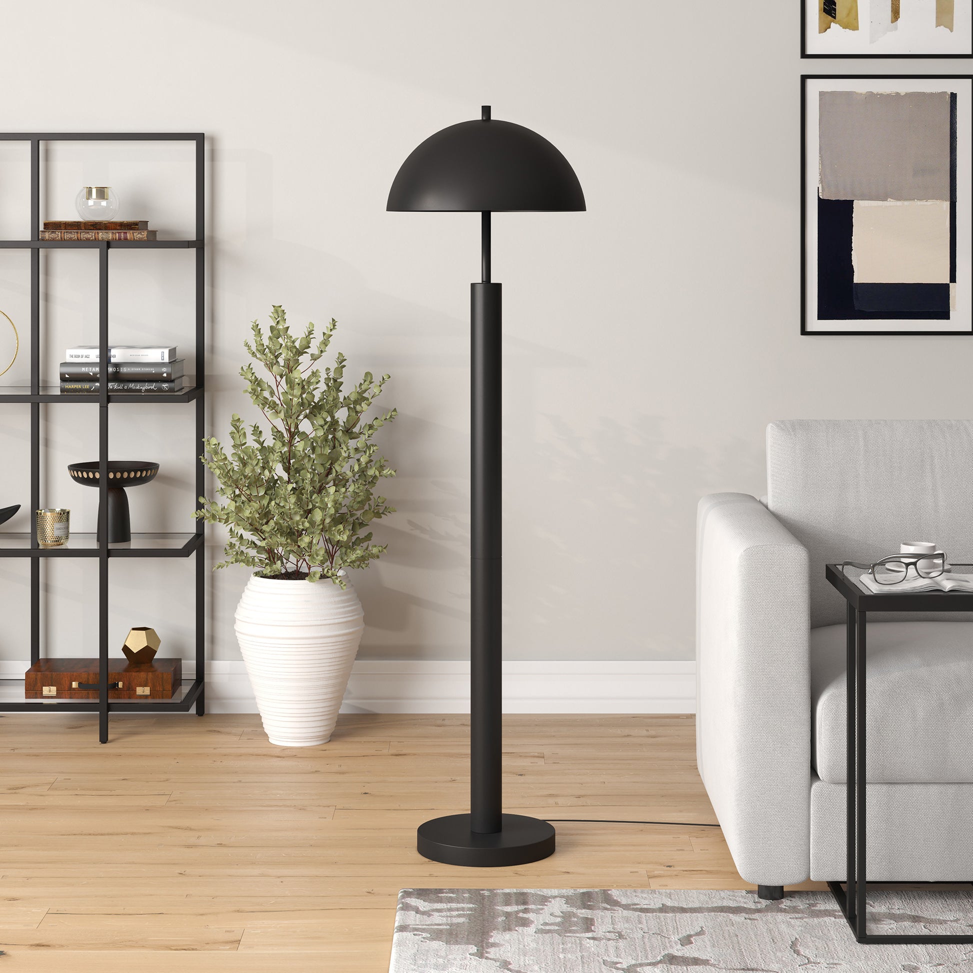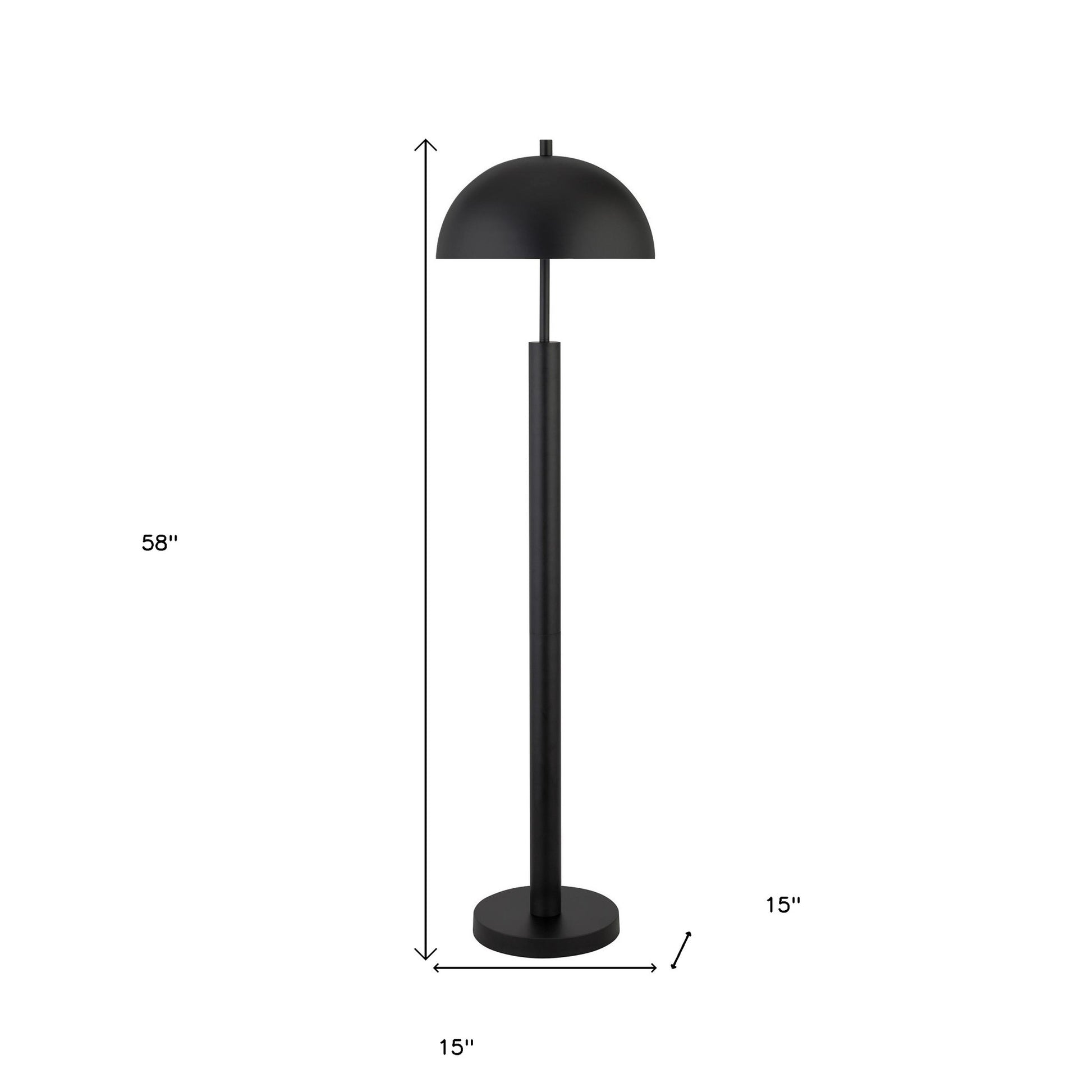 58" Black Traditional Shaped Floor Lamp With Black Dome Shade