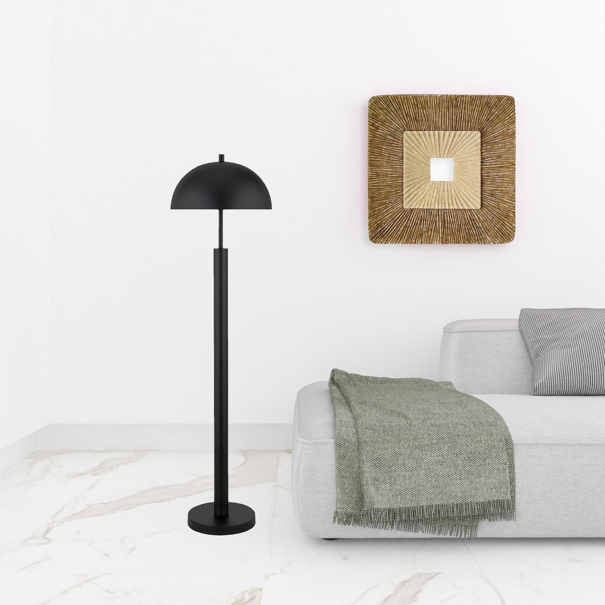 Bring of level of elegance and charm to your space with this good looking 58" black traditional shaped floor lamp with black dome shade. A gorgeous black metal base bring just the right amount of pizzazz to this fabulous lamp. The lamp shade itself has a dome shape and is made of metal, which makes it a perfect choice. Classically styled, this traditional lamp features a straight pole that extends upwards from a single base. High quality design makes this a great lamp for not only lighting, but accenting a room with style. The perfect lamp to create just the right natural and soothing light in your space. 58" H x 15" W x 15" D