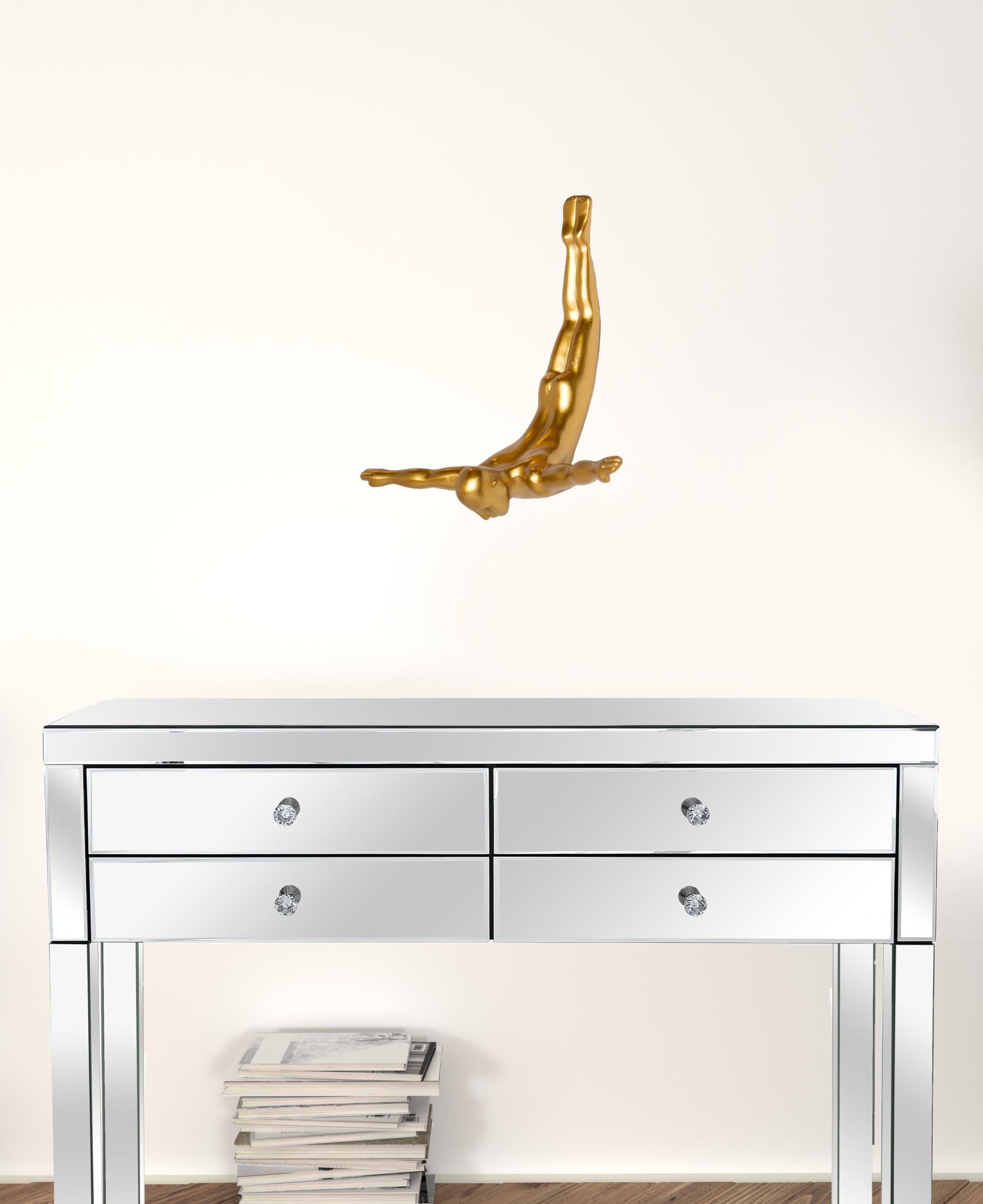 Elevate the originality of your decor with our unique Wall Diver art installation. This high-end wall sculpture creates the illusion of a man diving from any surface on which he is hung - a striking 3-dimensional addition to your home or office wall. Made from durable resin, Diving Man is an amazing conversation piece that looks great alone, or as a large grouping to make a bold design statement.