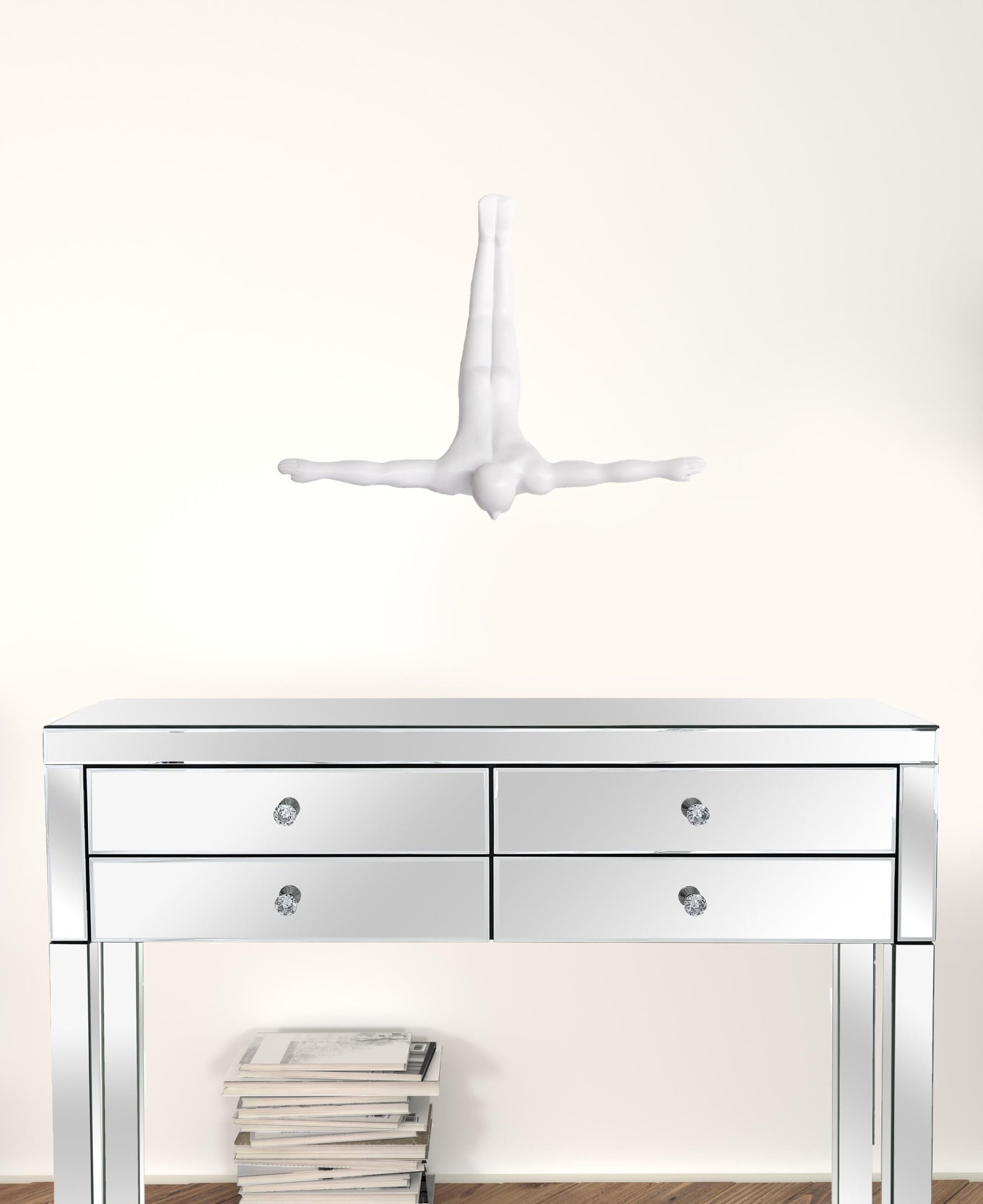Elevate the originality of your decor with our unique Wall Diver art installation. This high-end wall sculpture creates the illusion of a man diving from any surface on which he is hung - a striking 3-dimensional addition to your home or office wall. Made from durable resin, Diving Man is an amazing conversation piece that looks great alone, or as a large grouping to make a bold design statement.