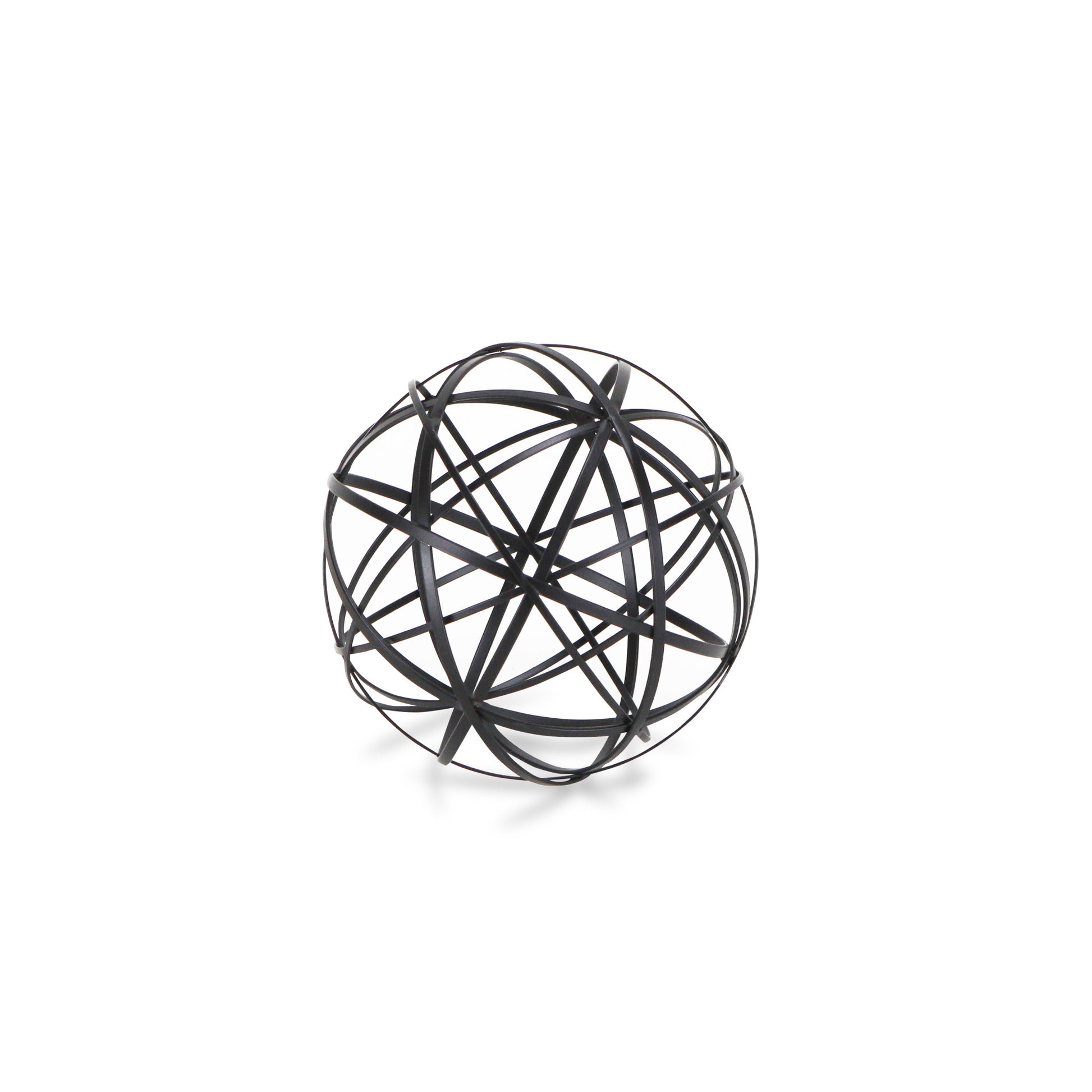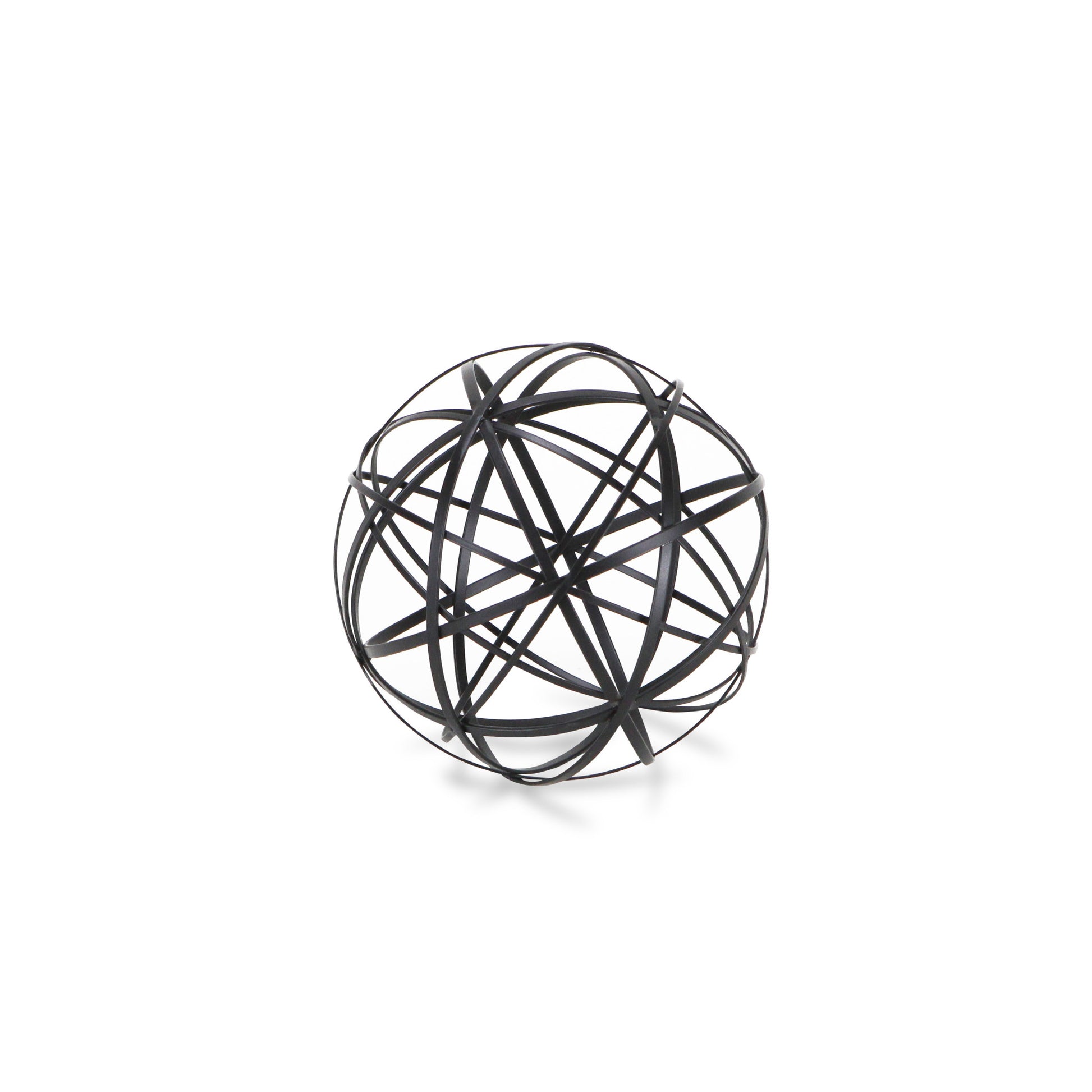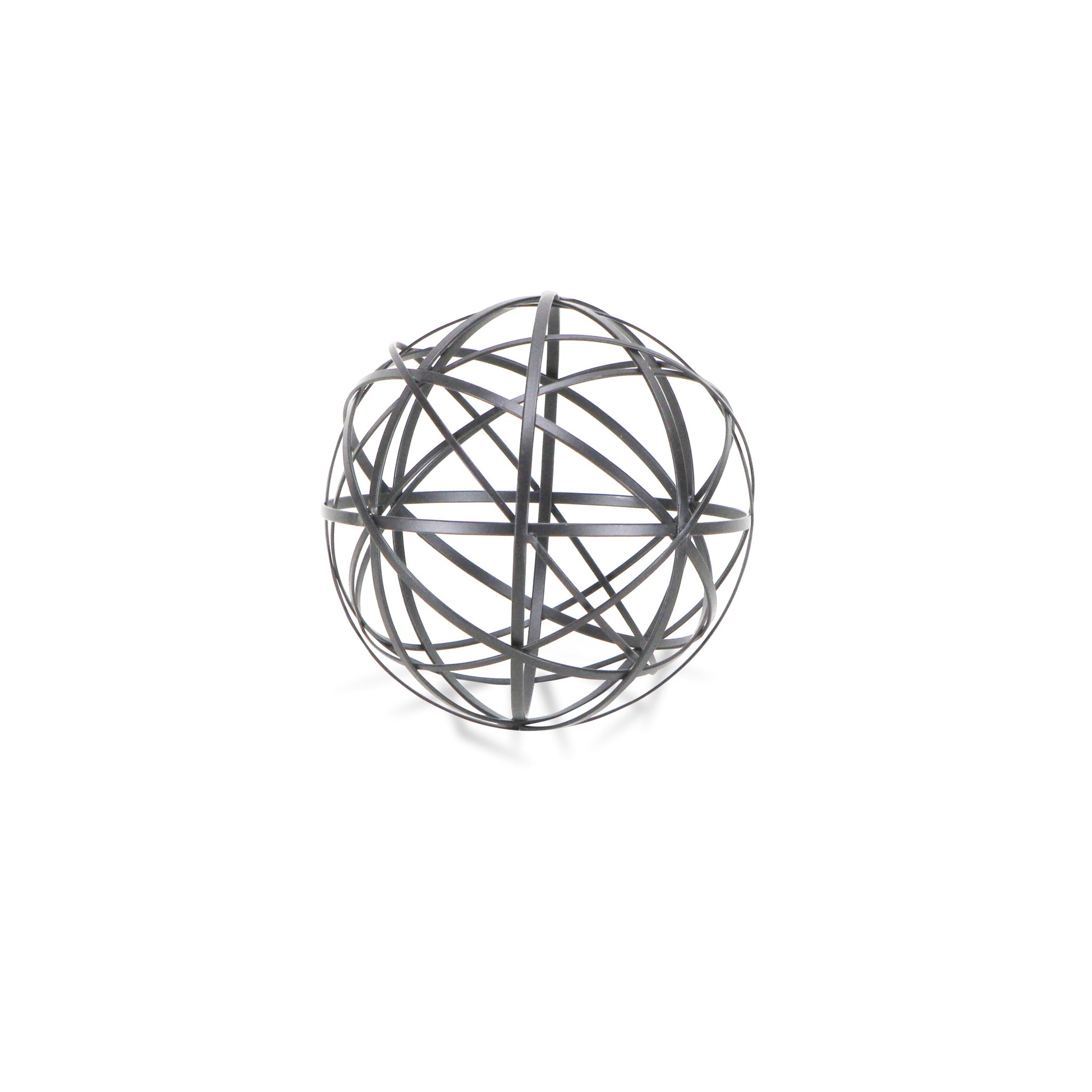 The perfect way to add a touch of contemporary design to your home, this Petite Black Metal Wire Ball Decorative Sculpture is made from solid metal and is finished to black color. The ball shape is made of intricate metal wires in varying sizes which intersect and create new smaller shapes adding a nice depth to the overall look. Use this decor piece on its own anywhere in your home or group it up with similar pieces you have in your bookshelf, your coffee table, or even on your entryway table. 6.25" H x 6.25" W x 6.25" D