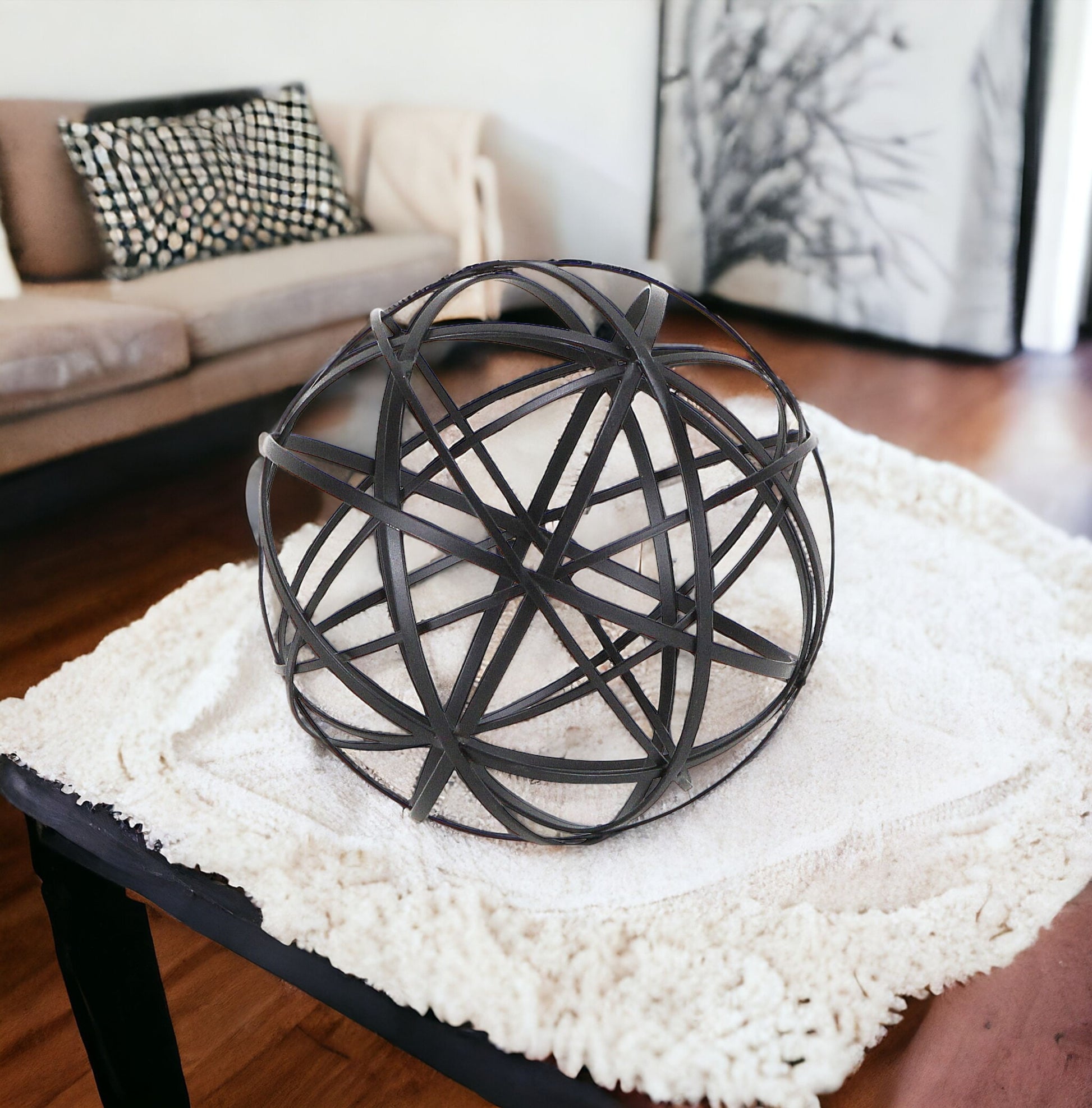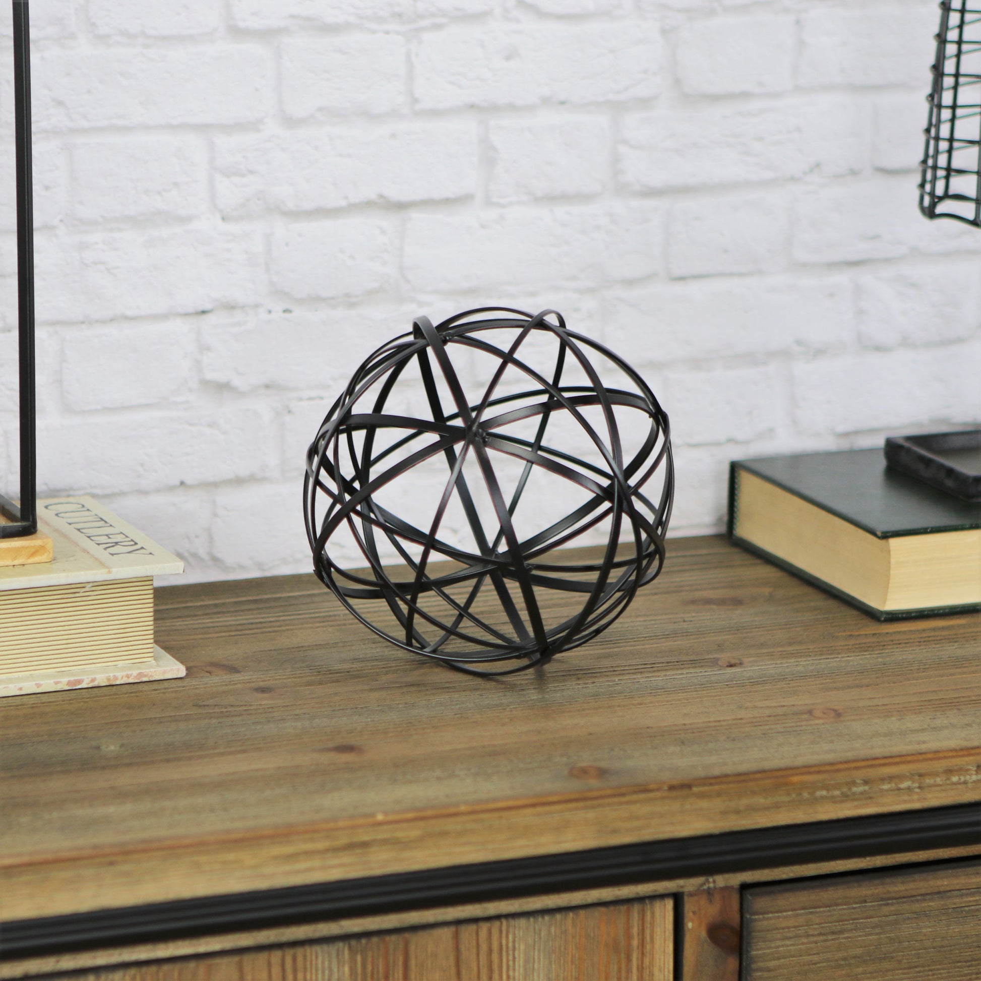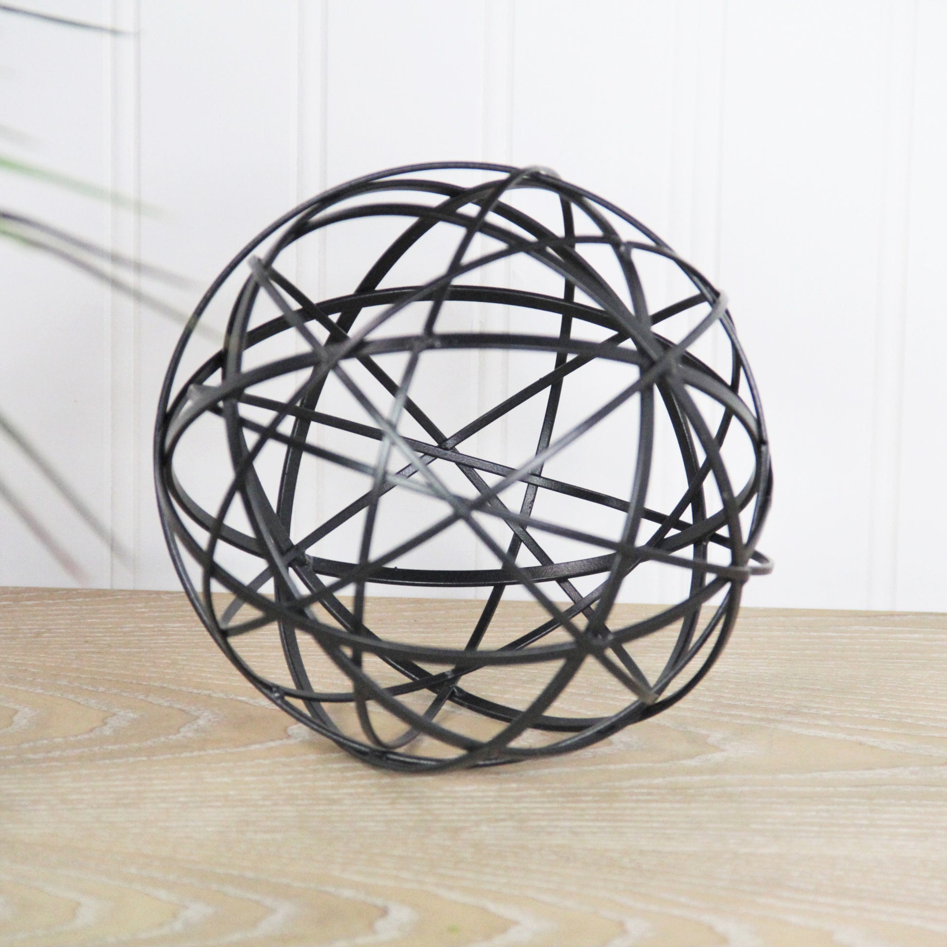 The perfect way to add a touch of contemporary design to your home, this Petite Black Metal Wire Ball Decorative Sculpture is made from solid metal and is finished to black color. The ball shape is made of intricate metal wires in varying sizes which intersect and create new smaller shapes adding a nice depth to the overall look. Use this decor piece on its own anywhere in your home or group it up with similar pieces you have in your bookshelf, your coffee table, or even on your entryway table. 6.25" H x 6.25" W x 6.25" D