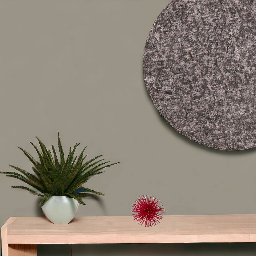 This 6-inch red metal spiky sphere sculpture adds a modern touch to your space with its unique design and vibrant color. Crafted from high-quality metal, this piece is not only visually appealing but also durable, making it a long-lasting decoration for your home. The contemporary style of this sculpture enhances the overall aesthetic of any room, perfect for those who appreciate a sleek and sophisticated look. 6-inch H x 6-inch W x 6-inch D