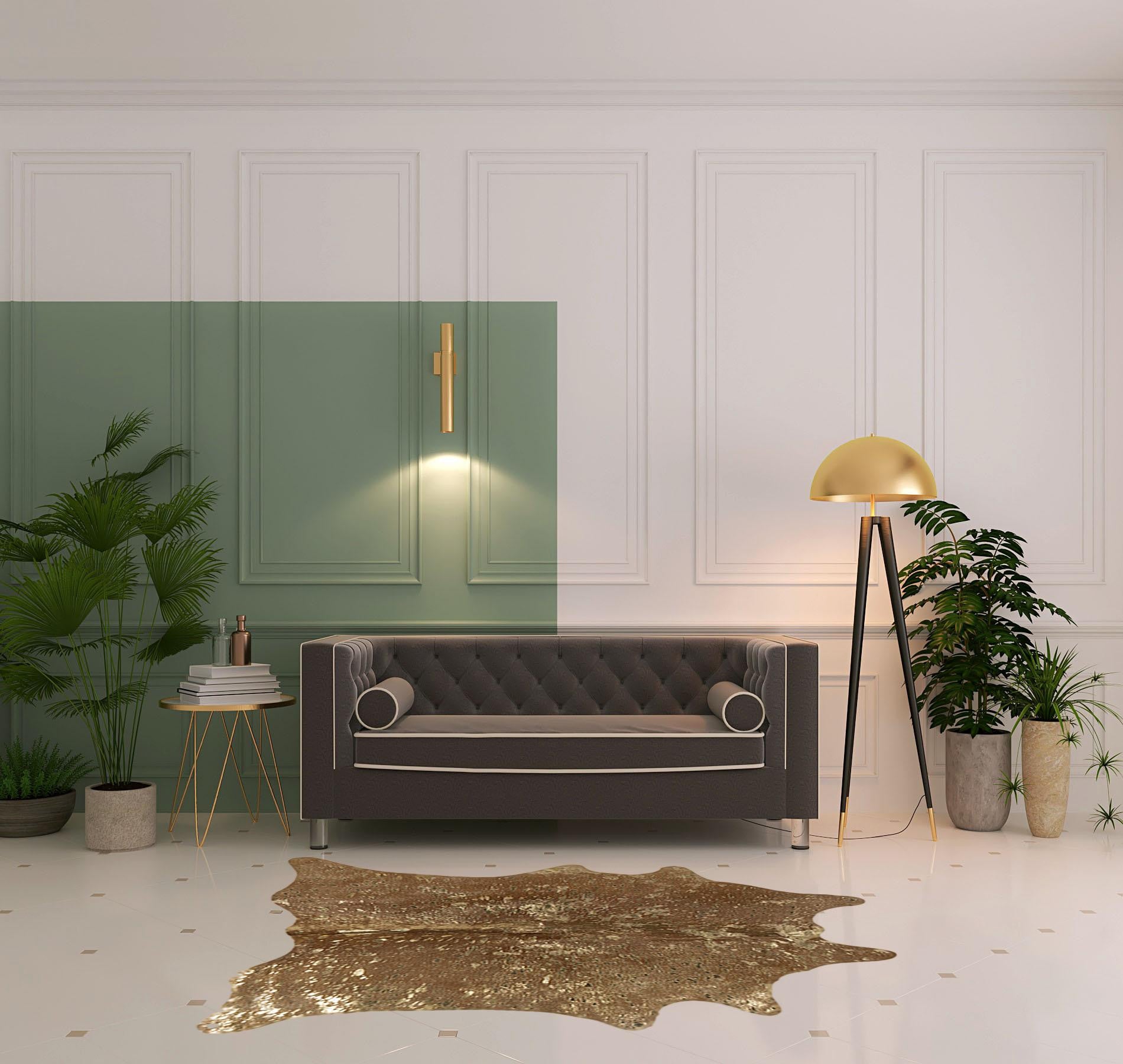 This 6-foot x 7-foot gold and brown cowhide hand knotted area rug, is a great way to add warmth to a room. Ideal for spaces with kids and pets, this rug is stain resistant to help repel stains and spilled liquids. Crafted by skilled artisans, this hand knotted rug is genuine and unique. No two will be exactly alike. Place this area rug against a hardwood or tile floor and it will enliven your living space with style and sophistication. 60-inch H x 84-inch W x 0.1-inch D