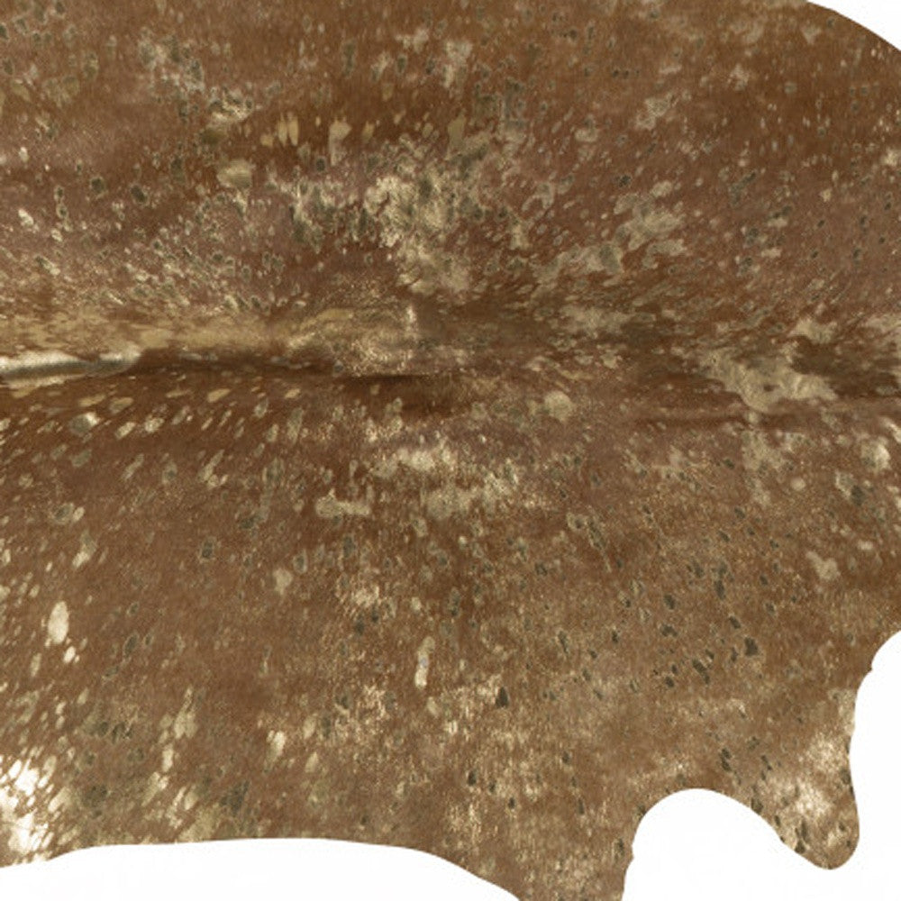 6' x 7' Gold and Brown Cowhide Hand Knotted Area Rug