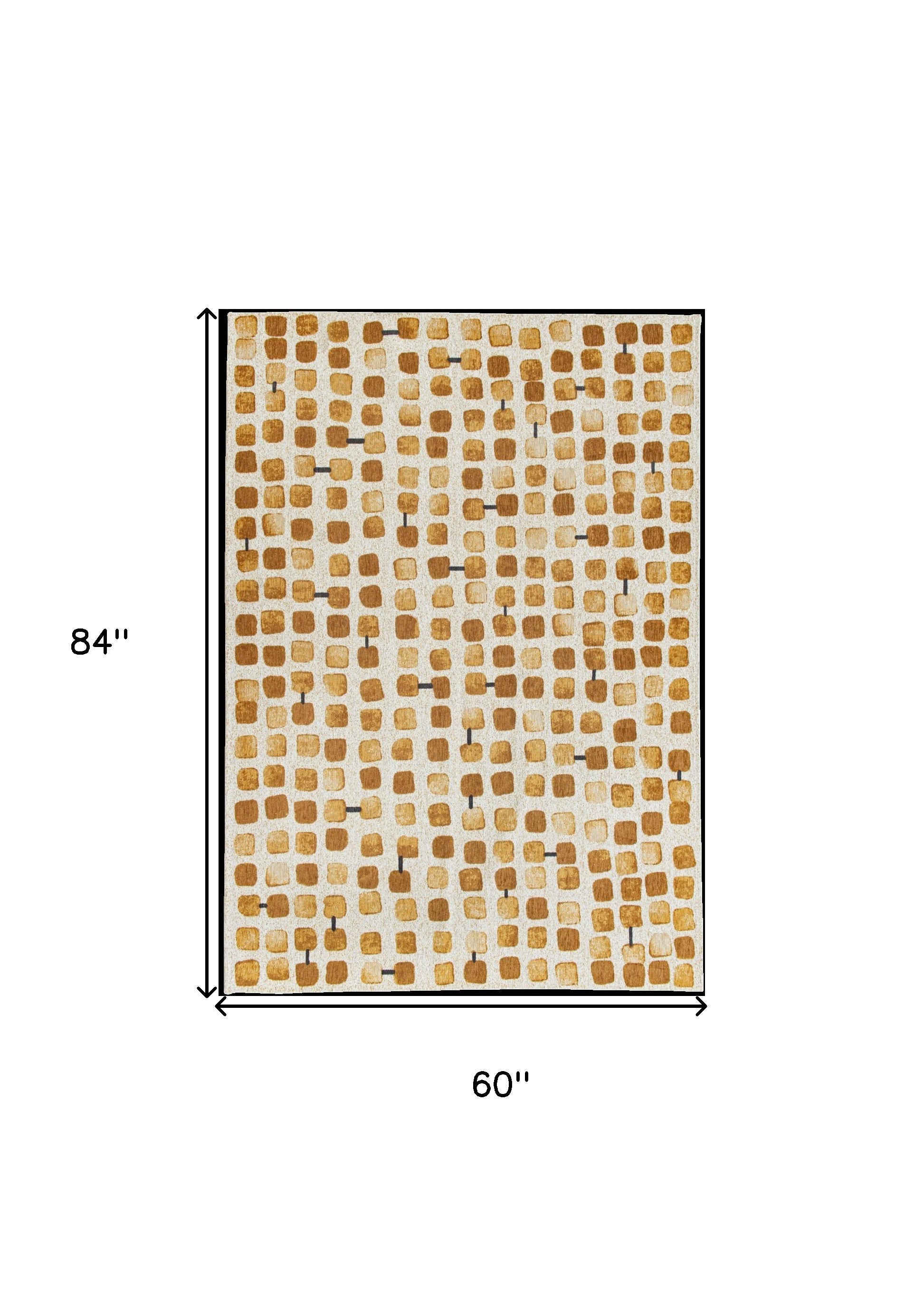 6' X 8' Brown and Beige Geometric Non Skid Area Rug