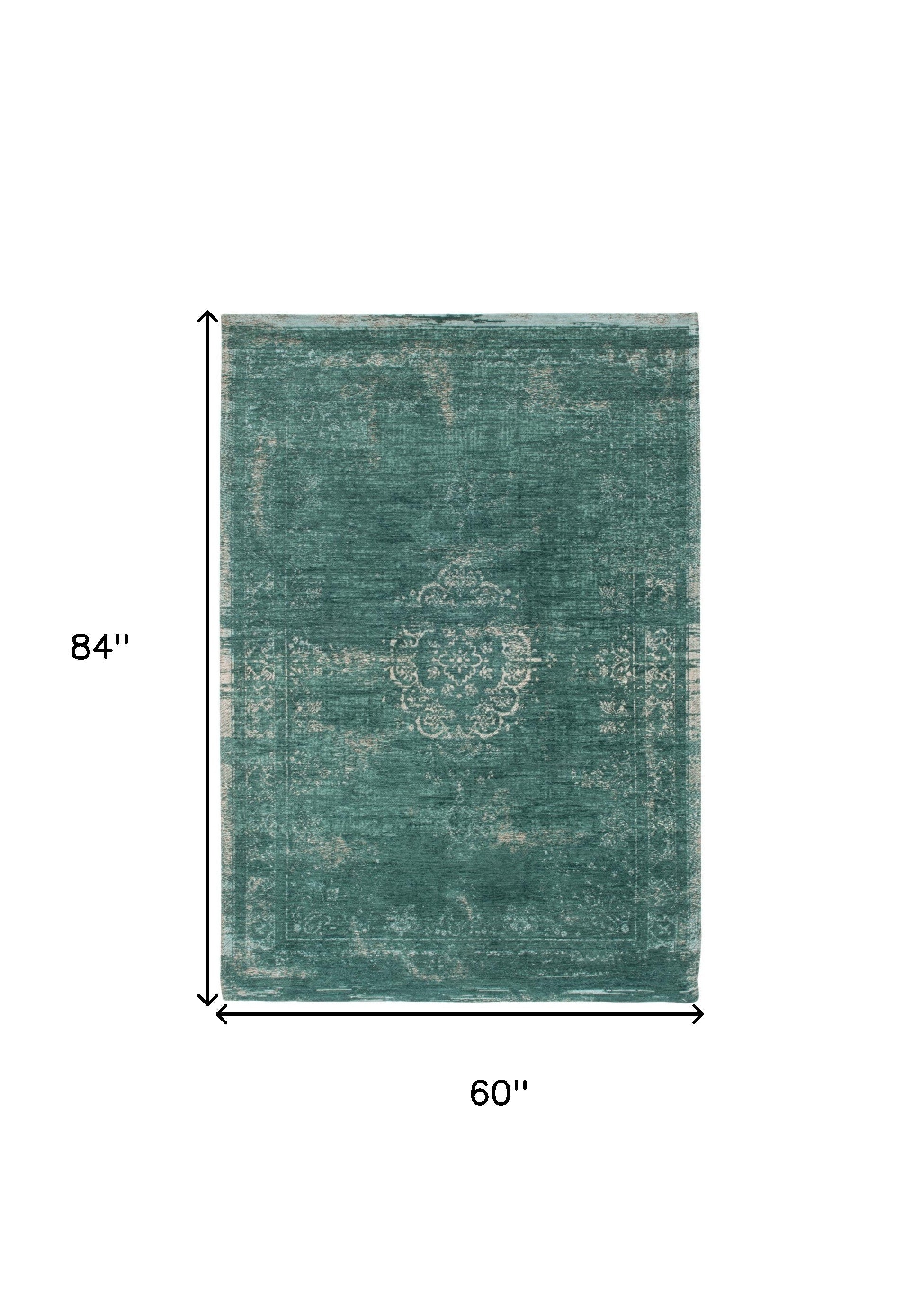 6' X 8' Gray and Green Medallion Non Skid Area Rug