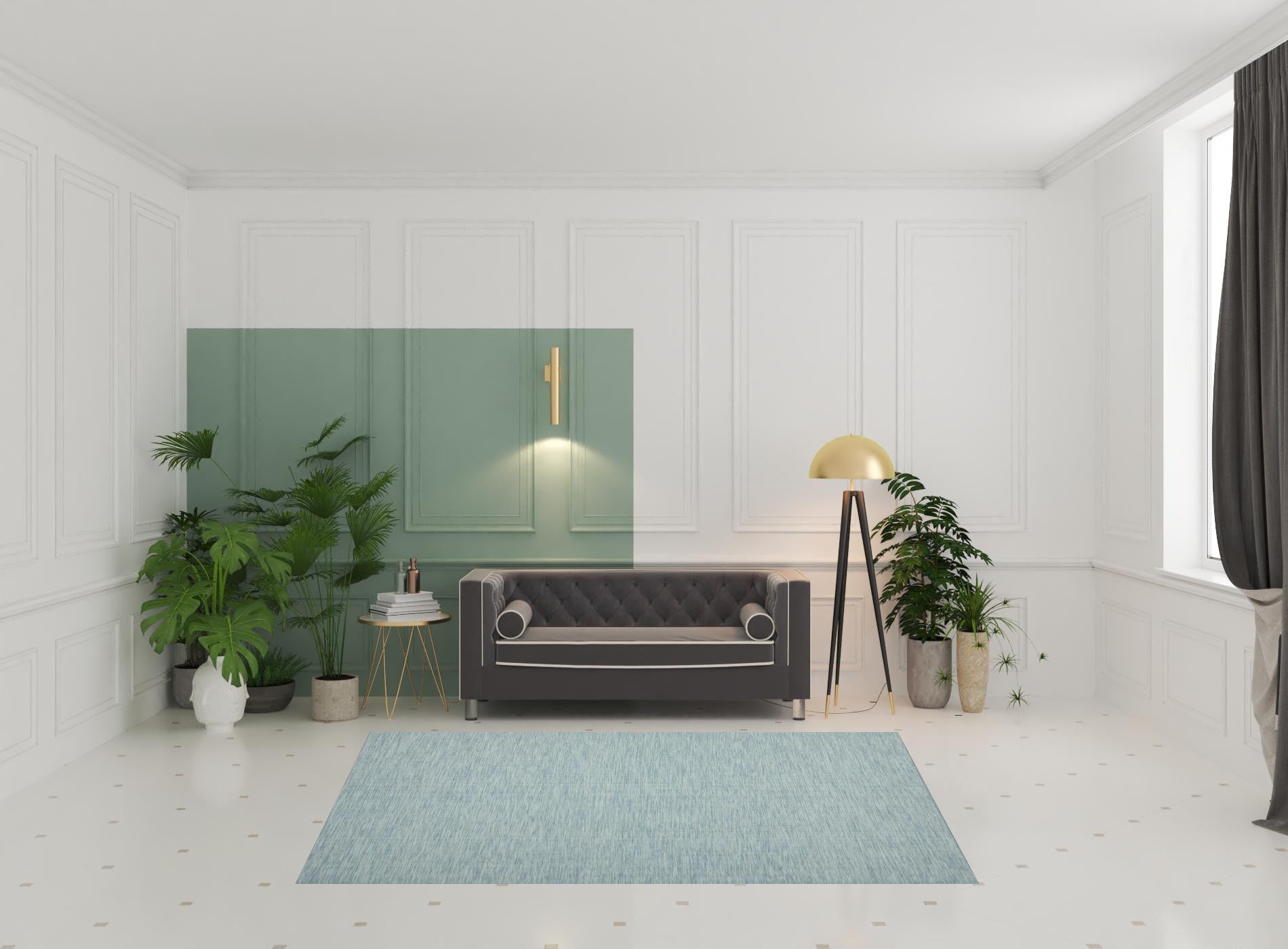 Add some artistry to your room with this 6' x 9' aqua power loom area rug. This rectangle shaped rug flaunts a aqua color that will be a great way to accent your space. Solid colors are versatile and will blend with any existing decor style. This superior Turkish rug represents the highest quality and is built to last. Area Rugs help to give warmth and sense of home to your space. .25" H x 72" W x 108" D