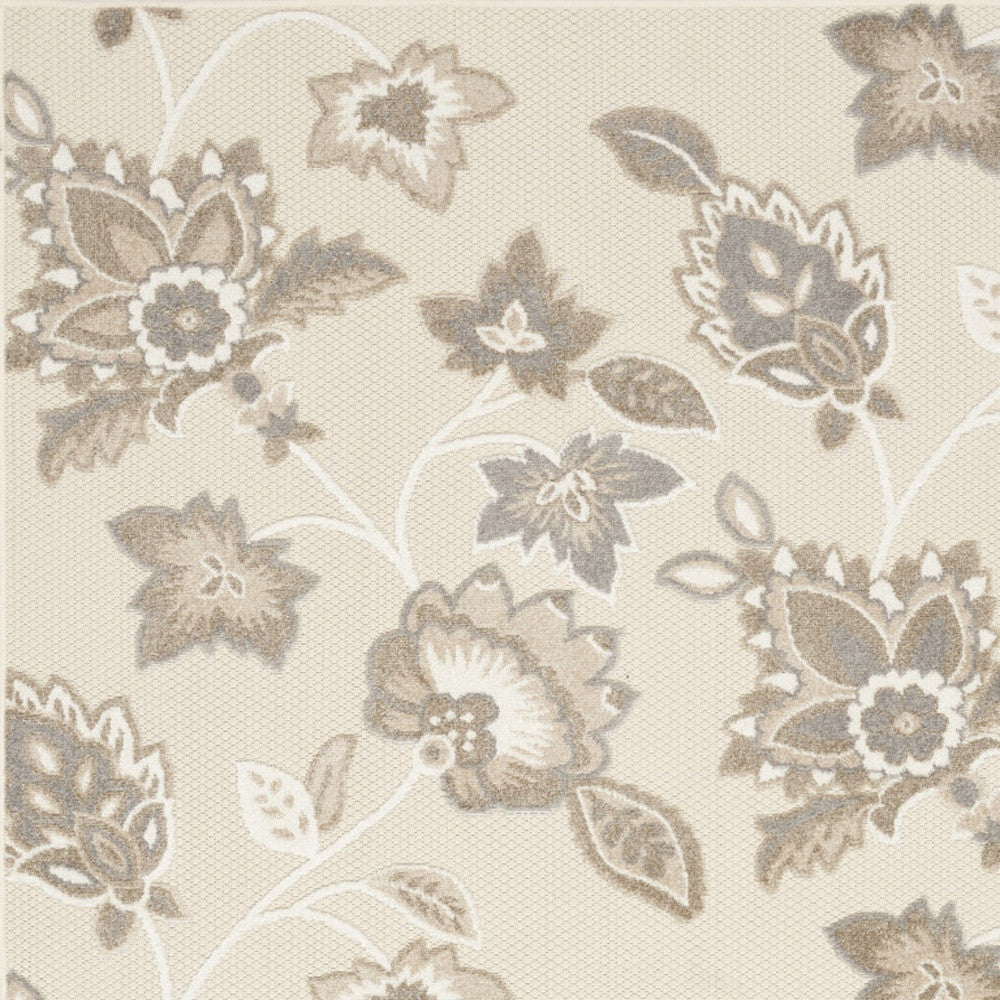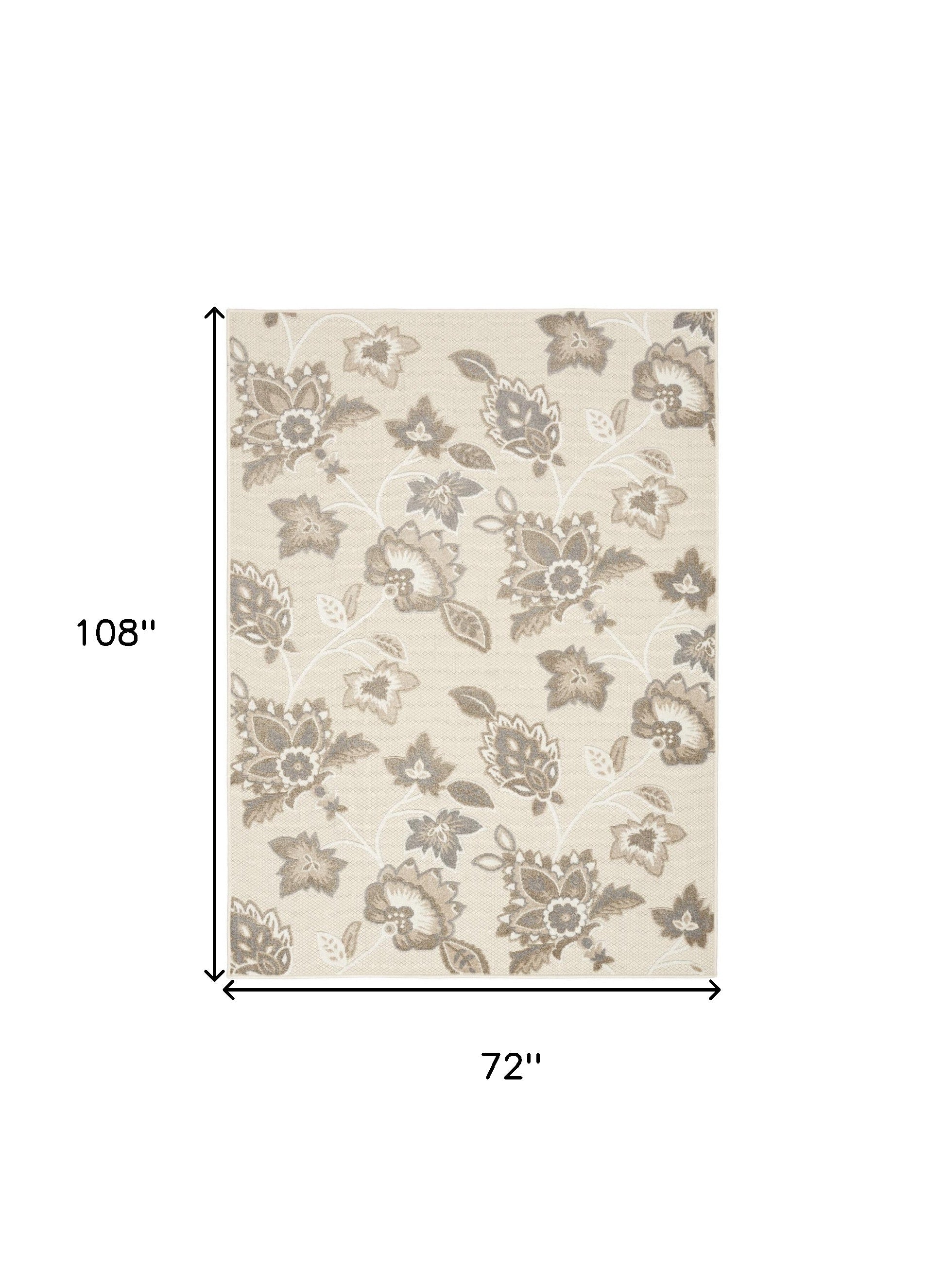 6' X 9' Beige Floral Stain Resistant Non Skid Area Rug