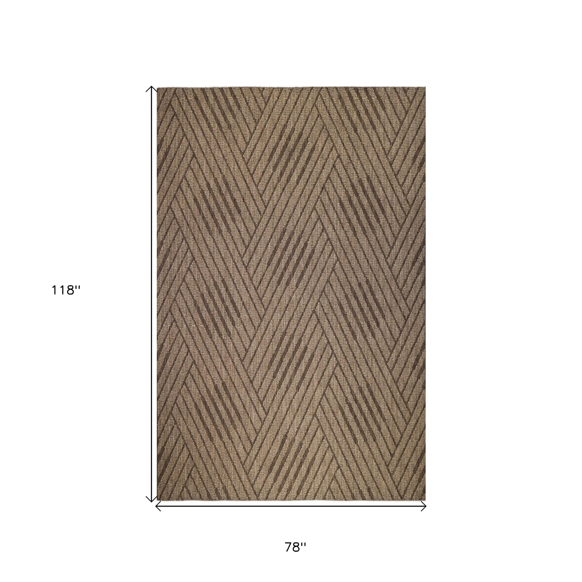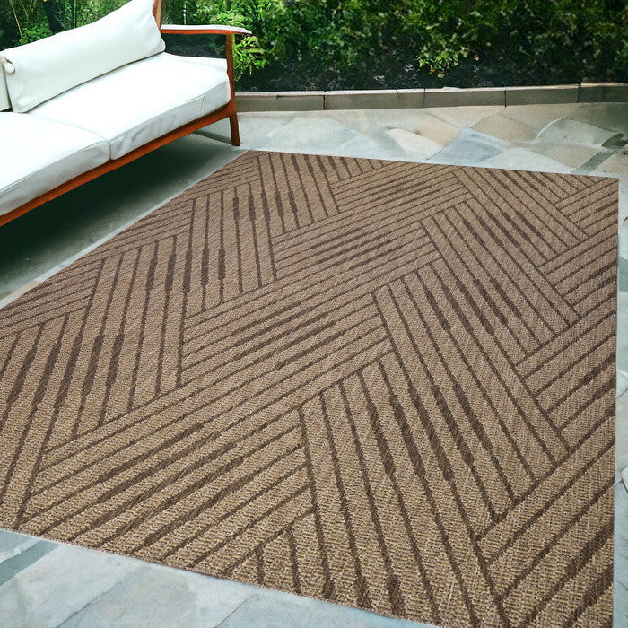 6' x 9' Beige Geometric Stain Resistant Indoor Outdoor Area Rug