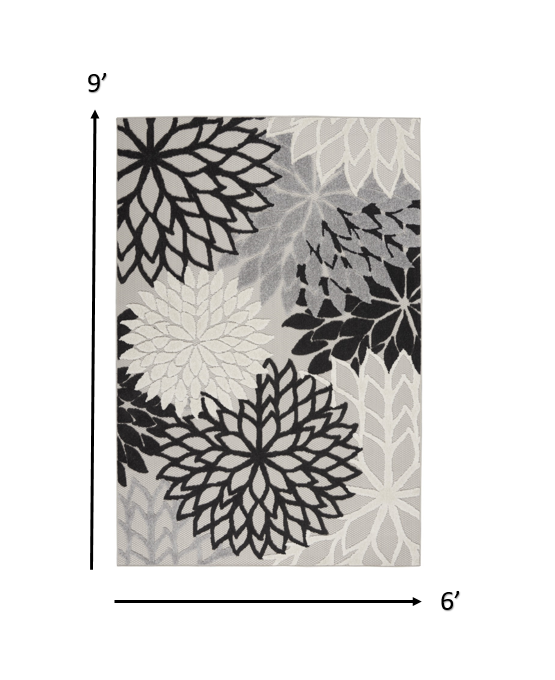 6' X 9' Black And White Floral Indoor Outdoor Area Rug