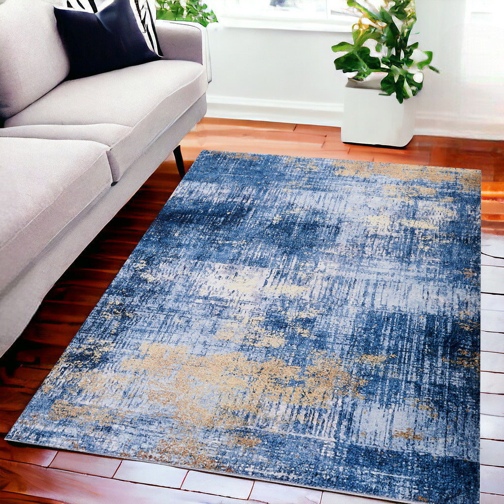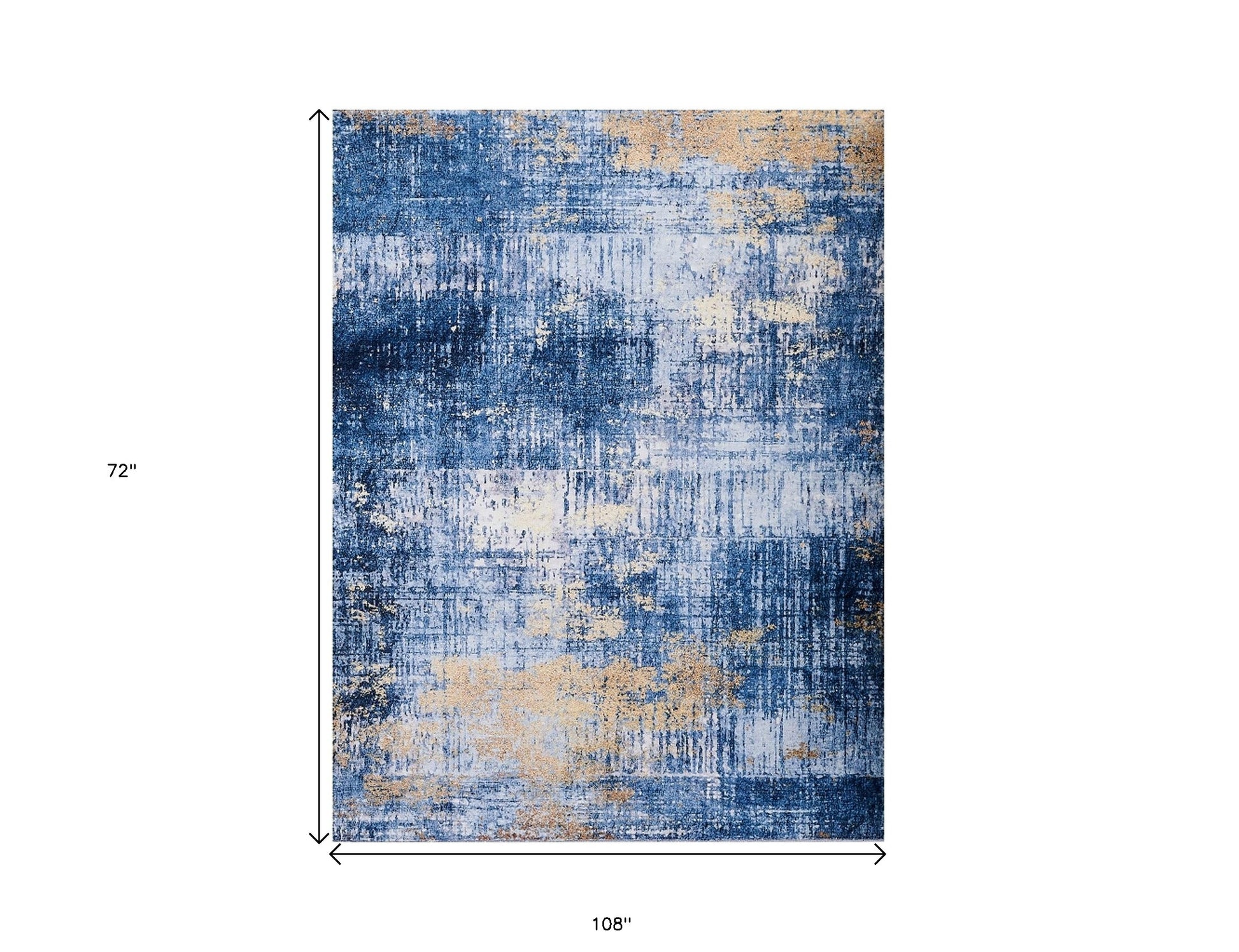 6' x 9' Blue and Gold Abstract Printed Washable Non Skid Area Rug