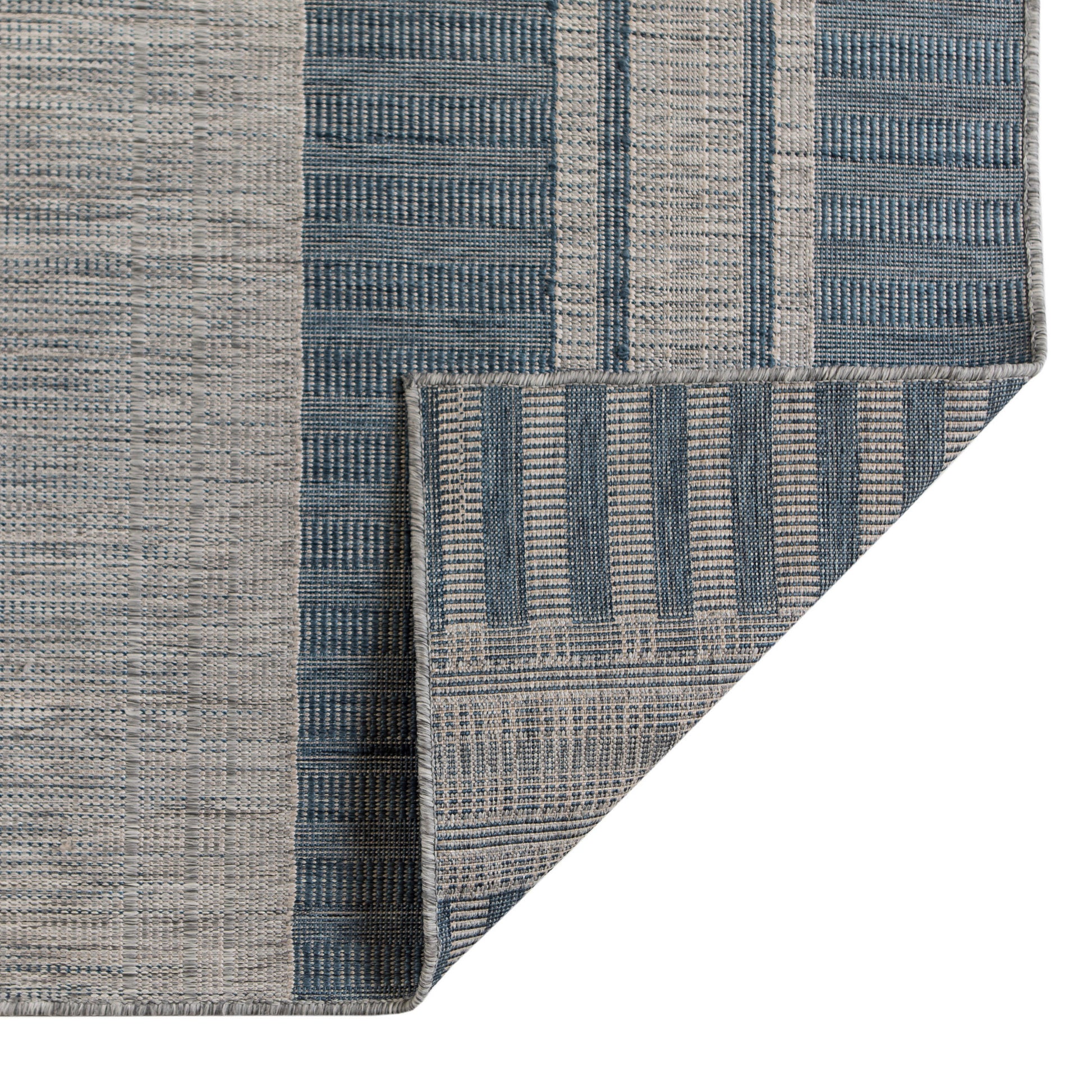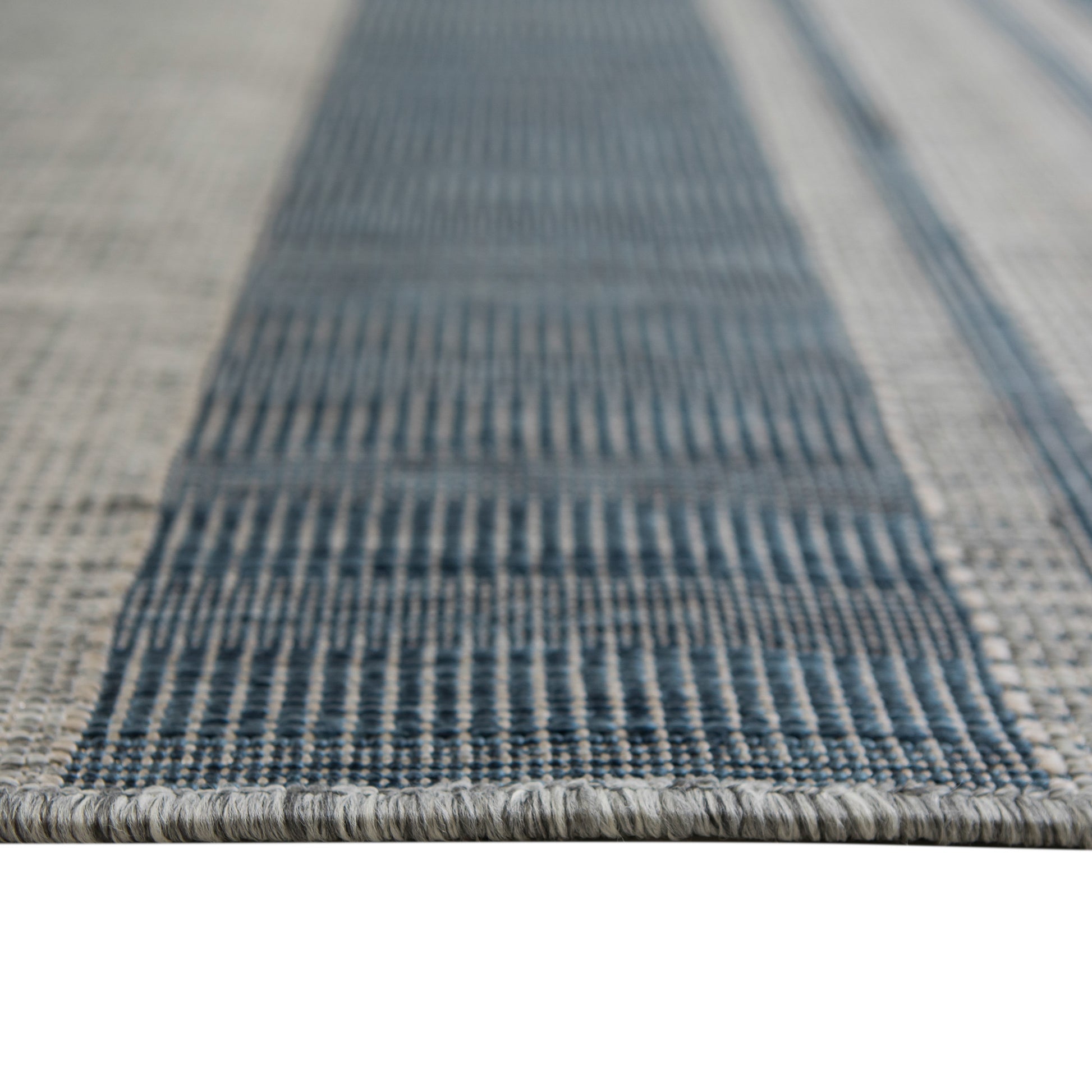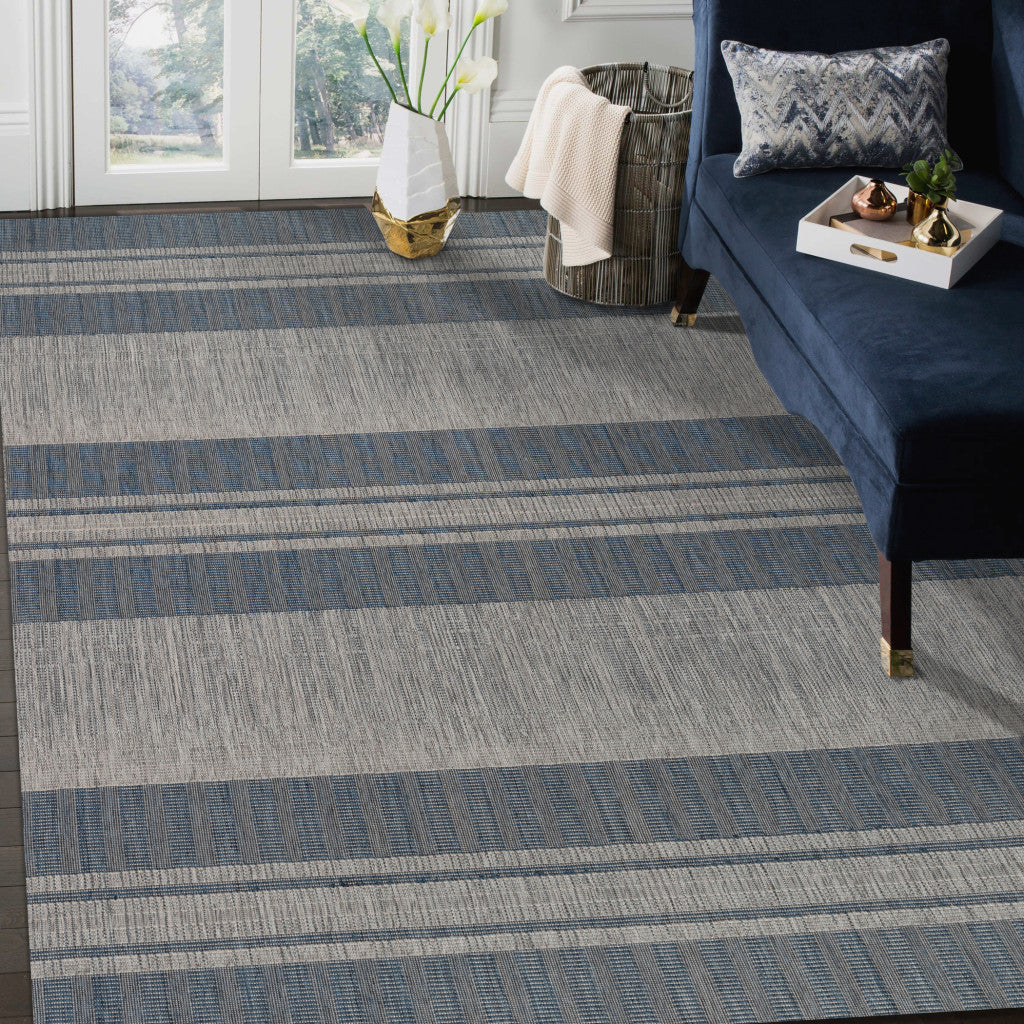 6' x 9' Blue and Gray Striped Stain Resistant Indoor Outdoor Area Rug