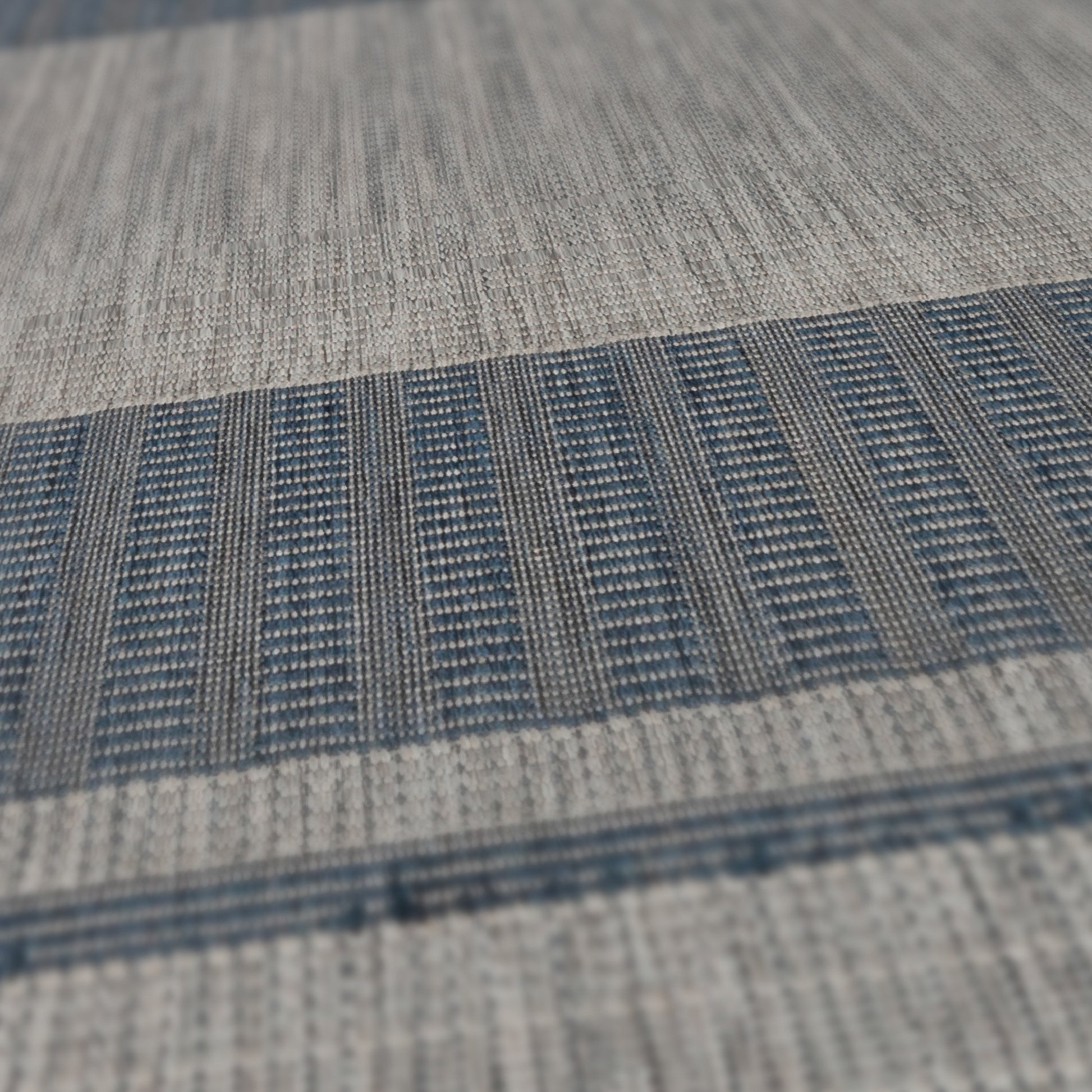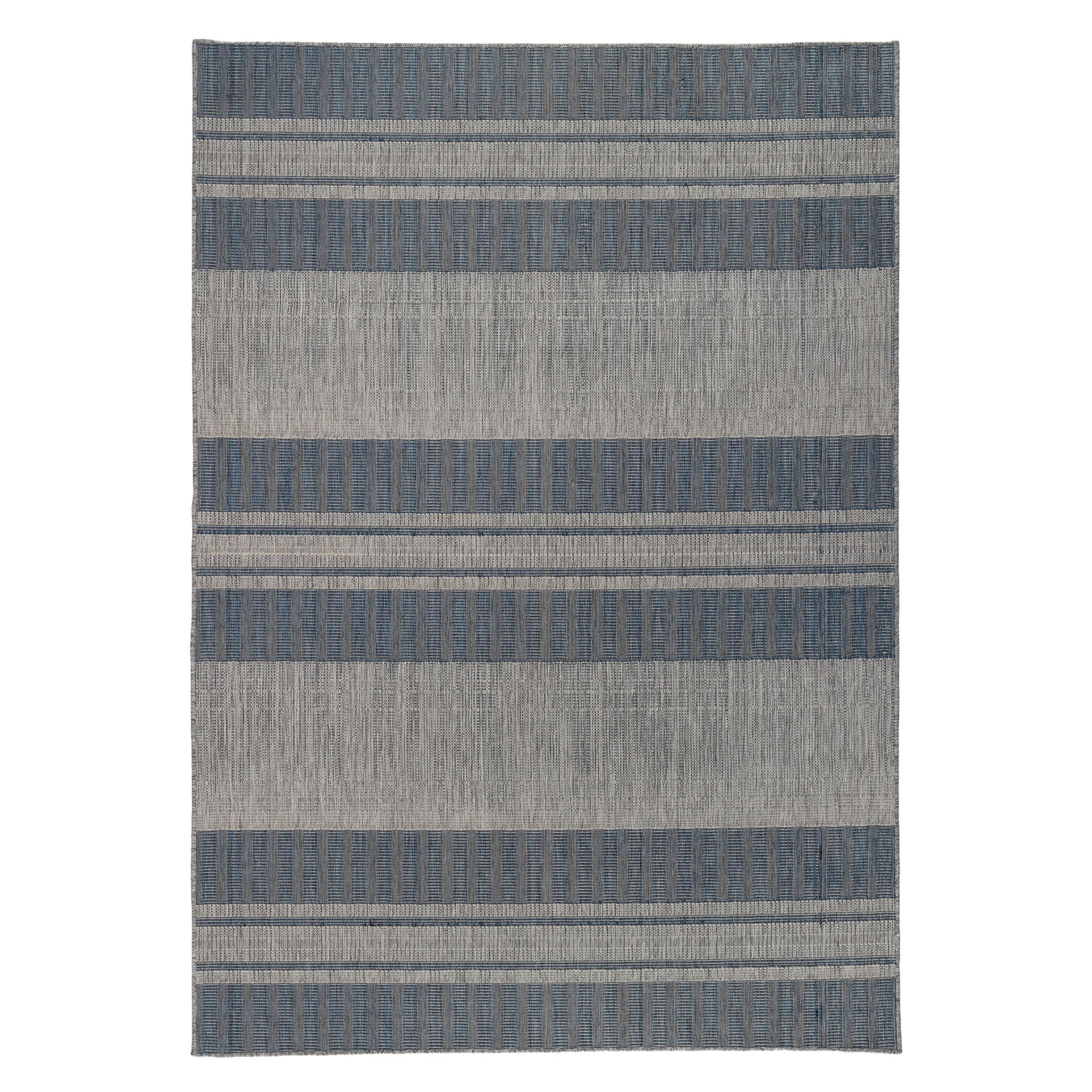 Add great coloration and comfortable texture to your space with this 6-foot x 9-foot blue and gray striped stain resistant indoor outdoor area rug. This rectangle shaped rug features a striped design in blue and gray to give it visual interest. A classic shape marries with good looking design for your space ideal for spaces with kids and pets, this rug is stain resistant to help repel stains and spilled liquids. Area rugs help to give warmth and sense of home to your space. 78-inch H x 118-inch W x 0.02-inch D