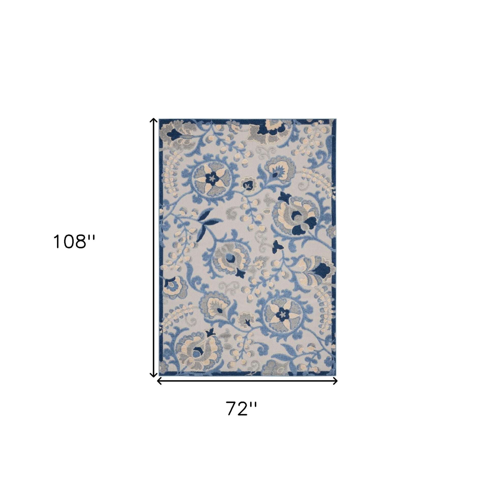 6' X 9' Blue And Grey Toile Non Skid Indoor Outdoor Area Rug