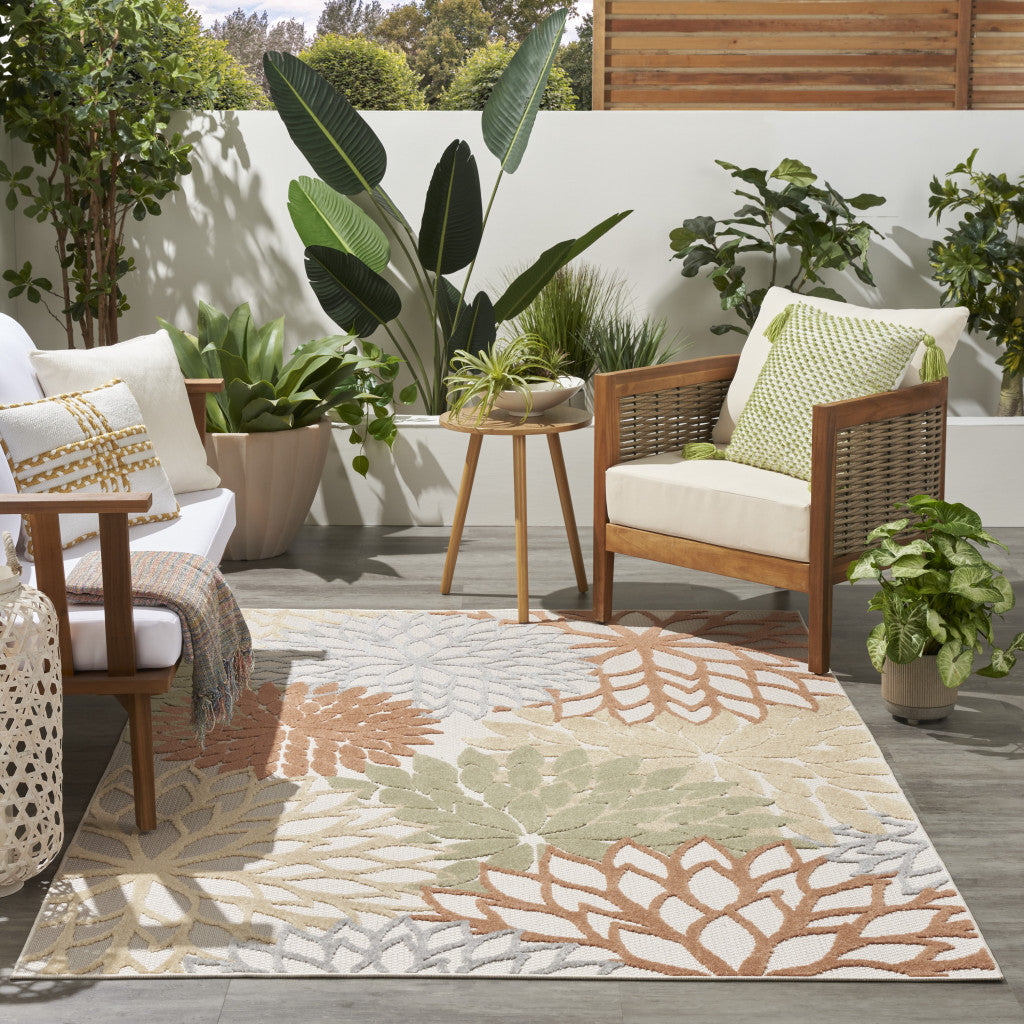 6' X 9' Blue And Orange Floral Power Loom Area Rug
