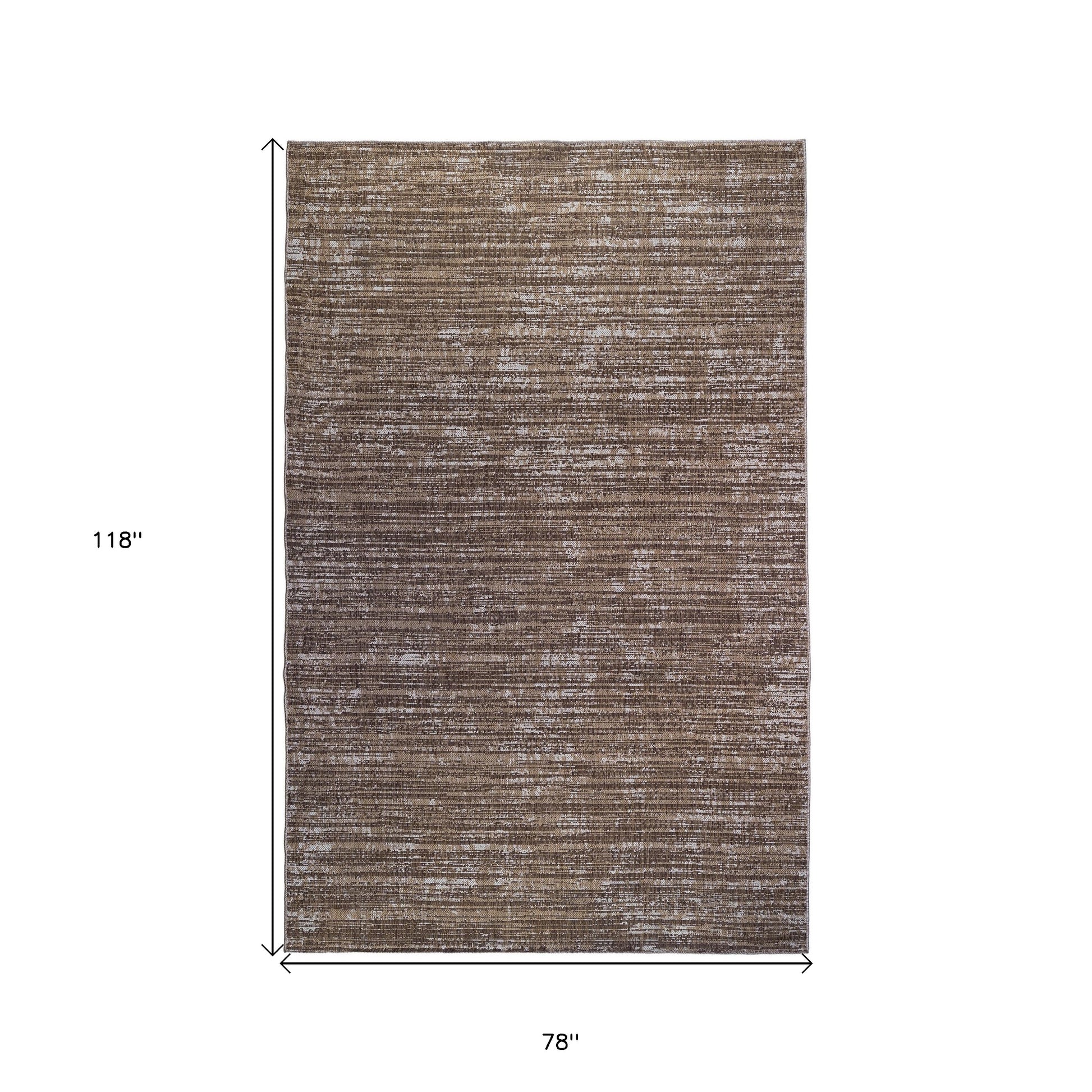 6' x 9' Brown and Ivory Striped Stain Resistant Indoor Outdoor Area Rug