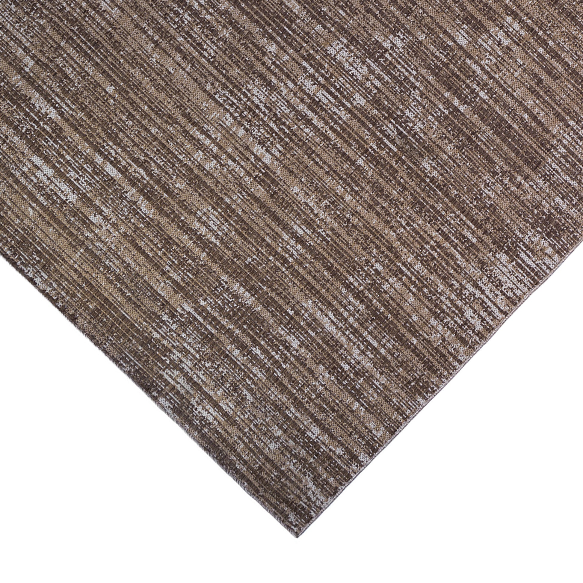 This 6-foot x 9-foot brown and ivory striped stain resistant indoor outdoor area rug, is a great way to add warmth to a room. This rectangle shaped rug features a striped design in brown and ivory to give it visual interest. A classic shape marries with good looking design for your space ideal for spaces with kids and pets, this rug is stain resistant to help repel stains and spilled liquids. Place this area rug against a hardwood or tile floor and it will enliven your living space with style and sophistication. 78-inch H x 118-inch W x 0.02-inch D