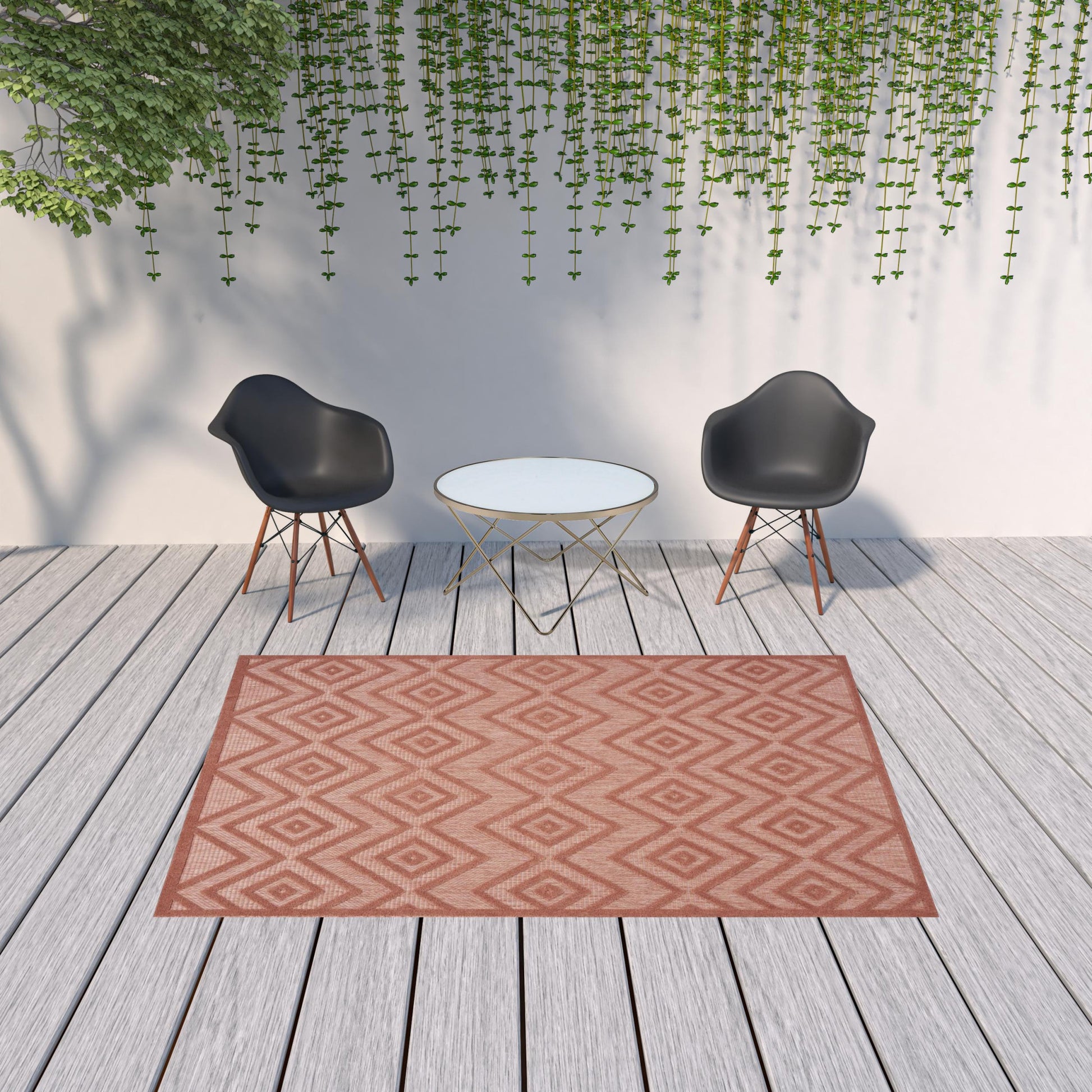 6' X 9' Coral Orange Argyle Indoor Outdoor Area Rug