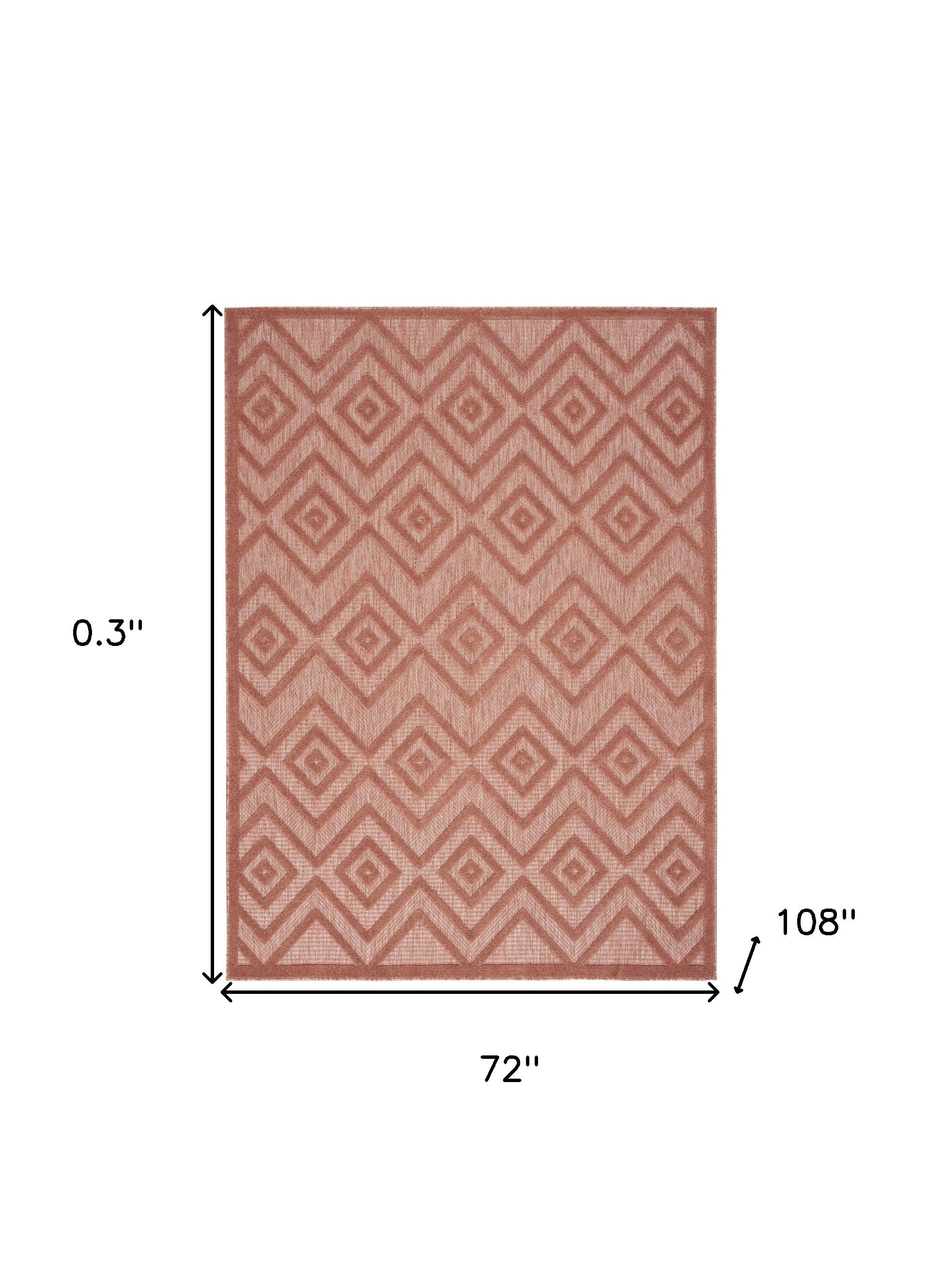 Set an inviting tone in your space with this 6' x 9' coral orange argyle indoor outdoor area rug. This rectangle shaped rug features a argyle design in coral orange to give it visual interest. A classic shape marries with good looking design for your space This superior Turkish rug represents the highest quality and is built to last. Area Rugs help to give warmth and sense of home to your space. 0.3" H x 72" W x 108" D