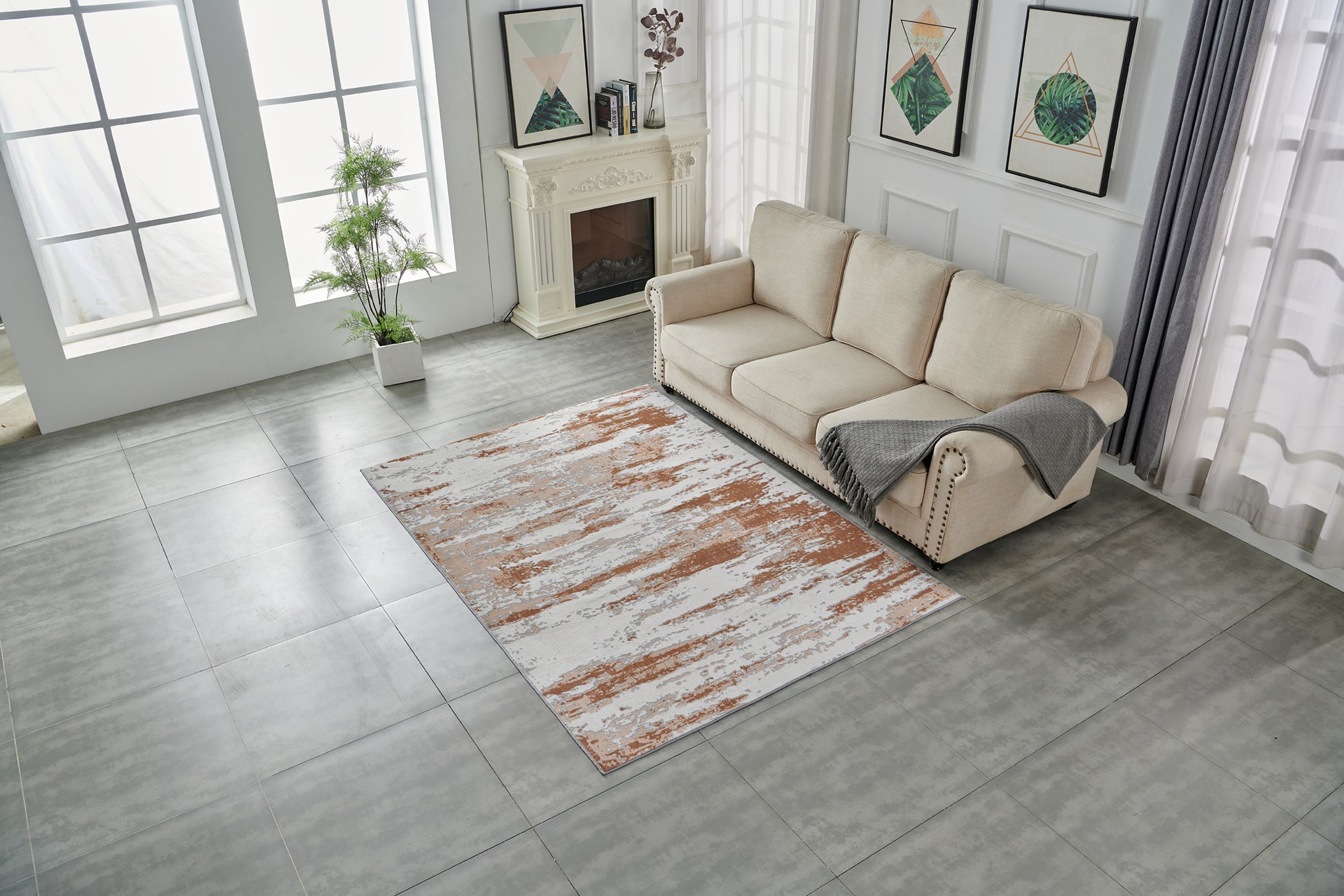 Set an inviting tone in your space with this 6-foot x 9-foot gray and brown abstract printed washable non skid area rug. This rectangle shaped rug features a abstract design in gray and brown to give it visual interest. A classic shape marries with good looking design for your space ideal for spaces with kids and pets, this rug is stain resistant to help repel stains and spilled liquids. Place this area rug against a hardwood or tile floor and it will enliven your living space with style and sophistication. 72-inch H x 108-inch W x 1-inch D