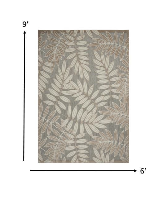 6' X 9' Gray And Ivory Floral Stain Resistant Indoor Outdoor Area Rug