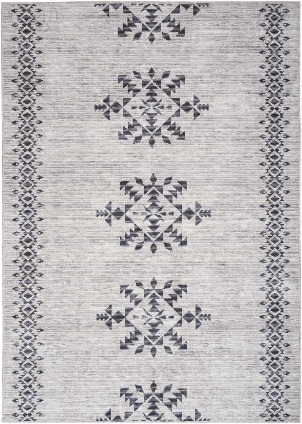 6' x 9' Gray and Ivory Geometric Power Loom Washable Area Rug