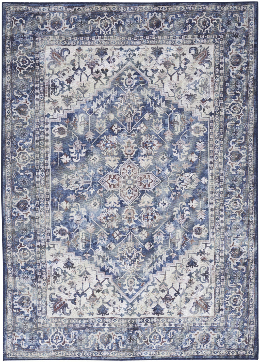 Set an inviting tone in your space with this 6' x 9' gray floral power loom distressed washable area rug. This rectangle shaped rug features a floral design in gray to give it visual interest. A classic shape marries with good looking design for your space The coloring of this rug adds a delightfully neutral tone to your home and will easily match with most any decor. This superior Turkish rug represents the highest quality and is built to last. Area Rugs help to give warmth and sense of home to your space. .28" H x 72.00" W x 108.00" D